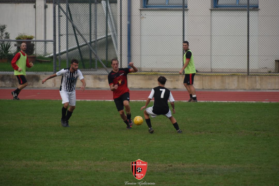 Non è stata una bella partita quella disputata sul campo del Cosulich di Monfalcone, reso inzuppato dalle fitte piogge cadute in settimana. I bisiachi, fermi ancora a quota zero punti (anche se con l’aggravante delle numerosissime assenze) nel primo scorcio di gara non sfigurano affatto contro un Sangio abulico che non riesce a manovrare la palla come sa fare sulla fitta erba del terreno monfalconese. Ci vuole una giocata d’alta classe di Bernobi al 29’, che si infila in corsa nella retroguardia avversaria, per sbloccare la gara.