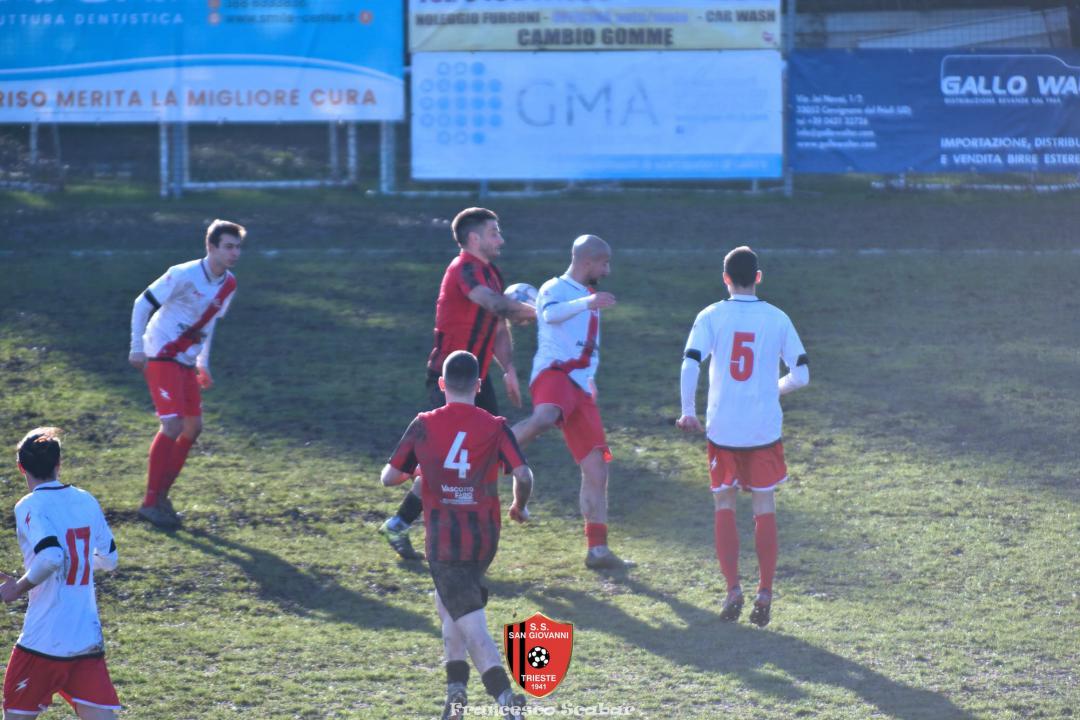 Seconda sconfitta consecutiva per il San Giovanni di mister Stefano Caiffa che torna a casa dal pantano del Fogar di Staranzano con un amaro ko, maturato con il più classico dei risultati (esattamente come un mese fa in Coppa Regione) al termine di una sfida davvero scialba, forse la più brutta della stagione. I rossoneri (ma anche la Bisiaca) hanno comunque un grosso attenuante per la giornata storta, ovvero il campo quasi al limite dell’impraticabile, una vera e propria palude che ha reso difficile la vita, al limite dell’impossibile, ad entrambe le squadre.