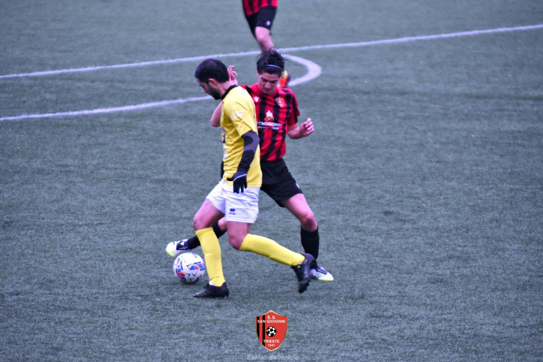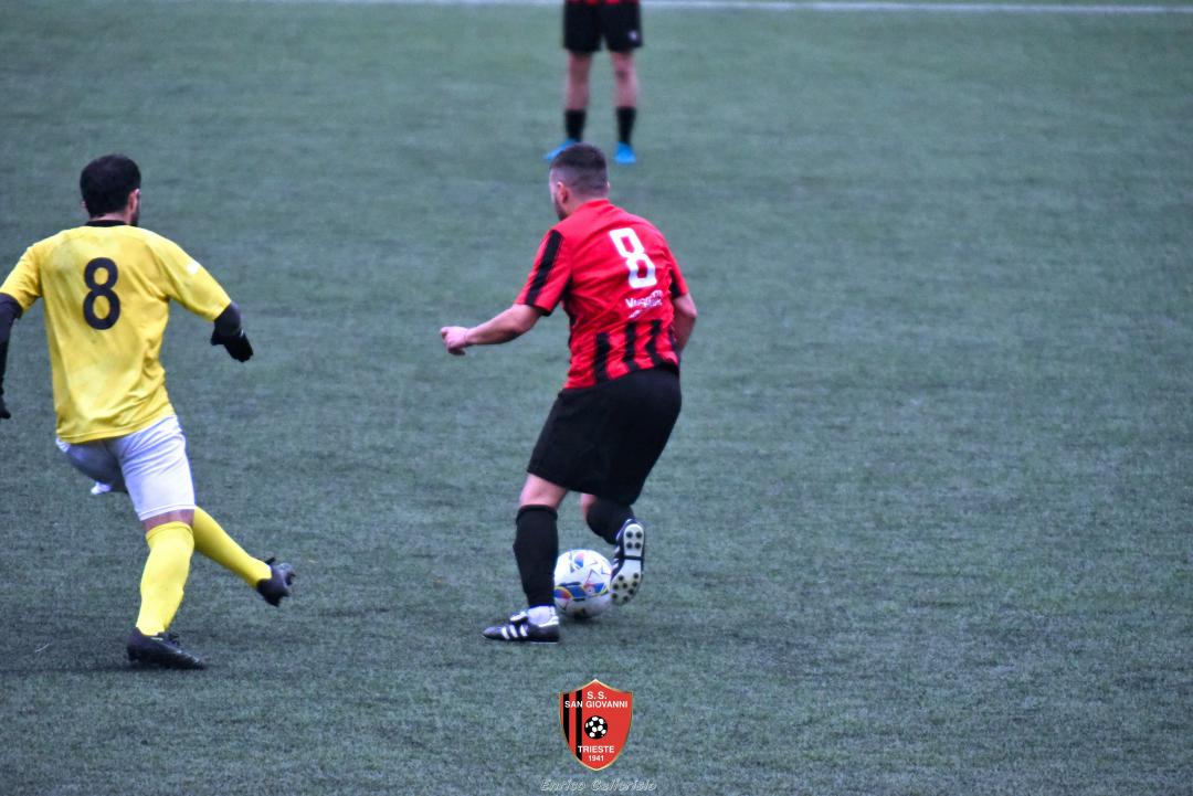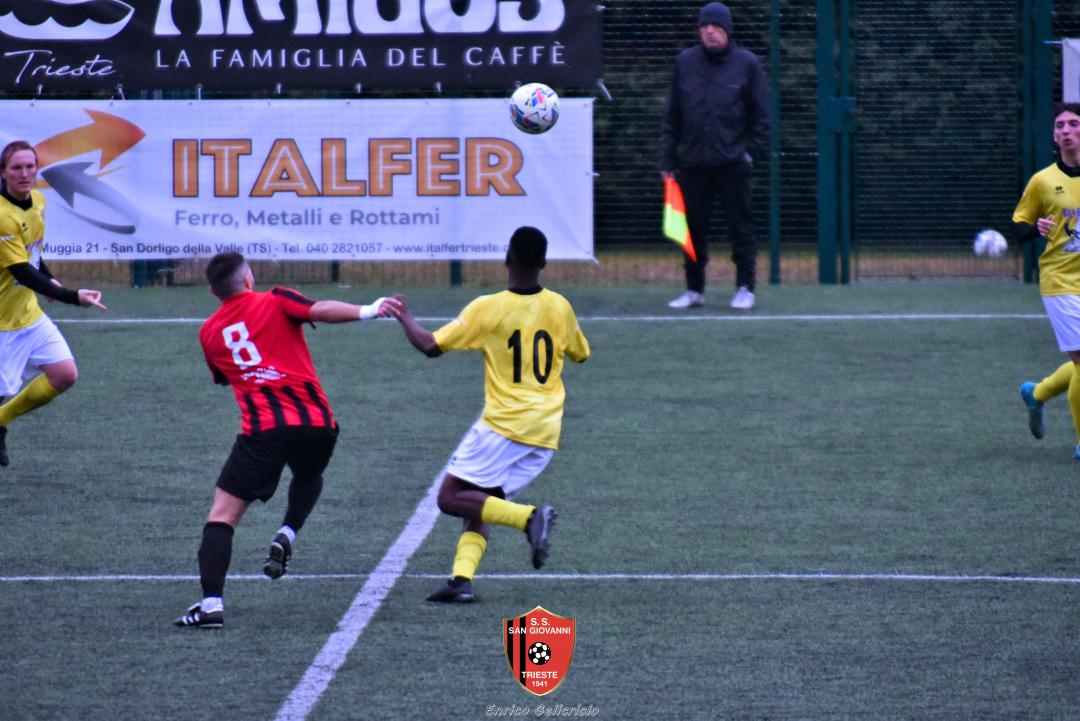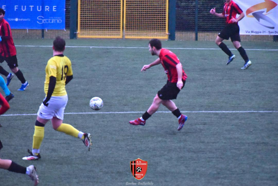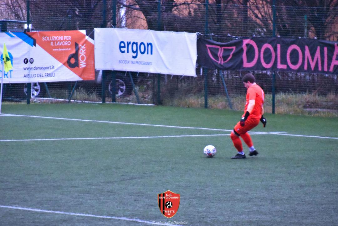 Alle ore 14.30 di domenica 25 gennaio il cielo è plumbeo sopra Via Felluga con la pioggia che cade bagnando i visi dei ventidue giocatori in campo e dell’arbitro Devescovi della sezione di Trieste. I padroni di casa del Costalunga, in tenuta classica giallonera, si schierano con una formazione piena di innesti nuovi per almeno cinque undicesimi, mister Sciarrone si affida ad un tridente molto veloce, guidato dal guizzante Tamba, per impensierire la retroguardia rossonera. Anche in casa San Giovanni (vestito di rossonero) mister Caiffa opta per un robustissimo turnover con in attacco l’inedita coppia formata da Kameni e Iogna Prat.