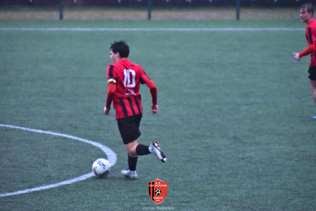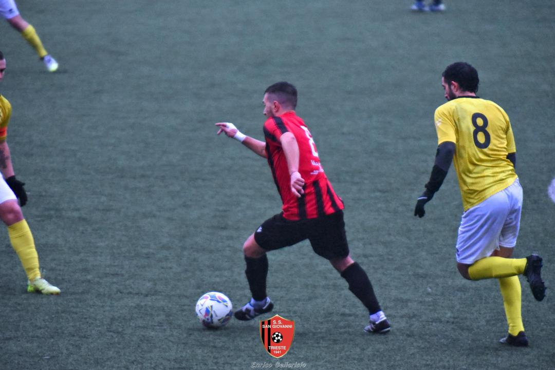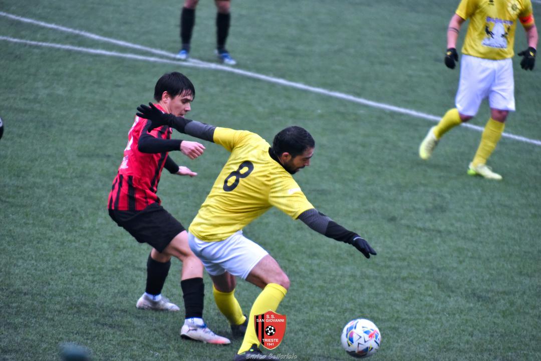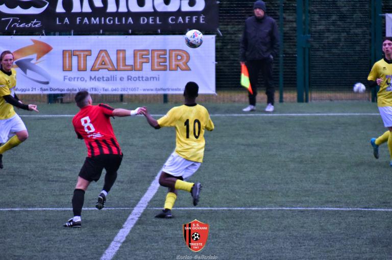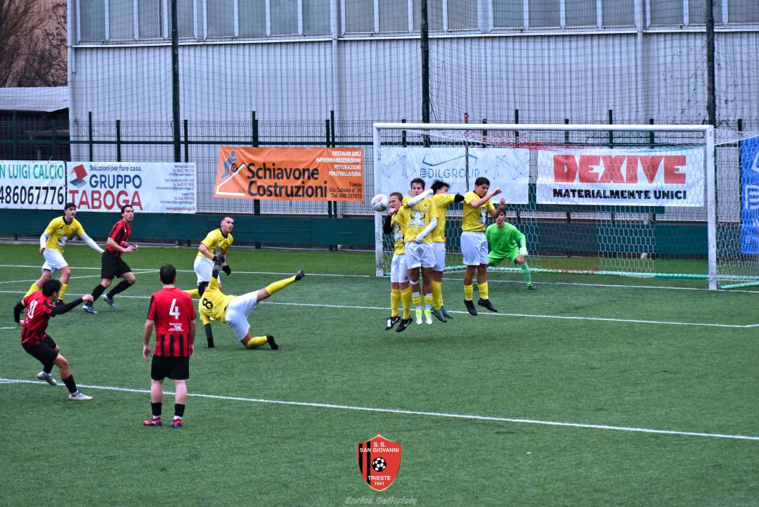 Alle ore 14.30 di domenica 25 gennaio il cielo è plumbeo sopra Via Felluga con la pioggia che cade bagnando i visi dei ventidue giocatori in campo e dell’arbitro Devescovi della sezione di Trieste. I padroni di casa del Costalunga, in tenuta classica giallonera, si schierano con una formazione piena di innesti nuovi per almeno cinque undicesimi, mister Sciarrone si affida ad un tridente molto veloce, guidato dal guizzante Tamba, per impensierire la retroguardia rossonera. Anche in casa San Giovanni (vestito di rossonero) mister Caiffa opta per un robustissimo turnover con in attacco l’inedita coppia formata da Kameni e Iogna Prat.