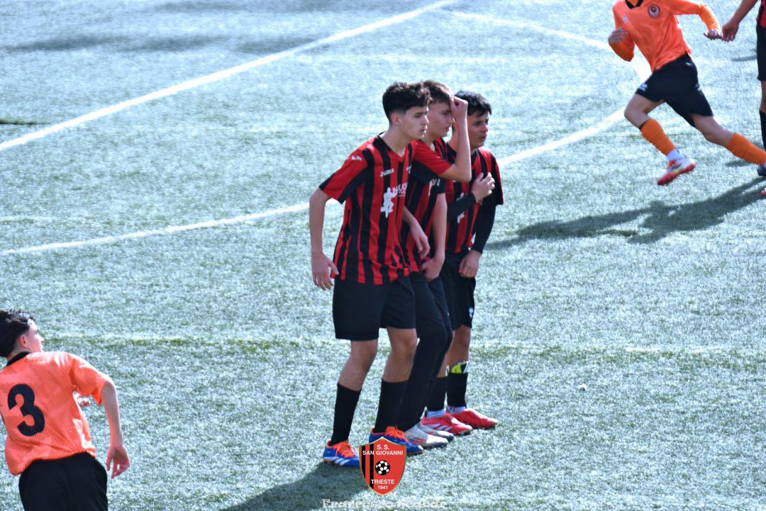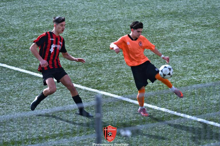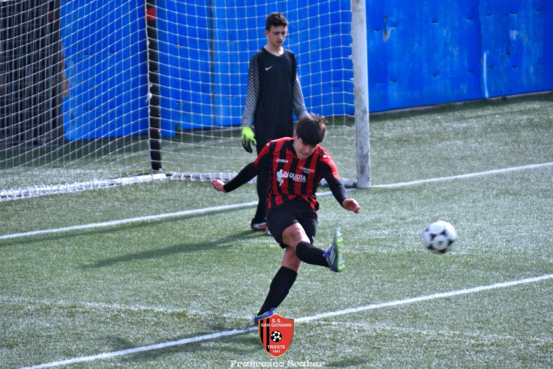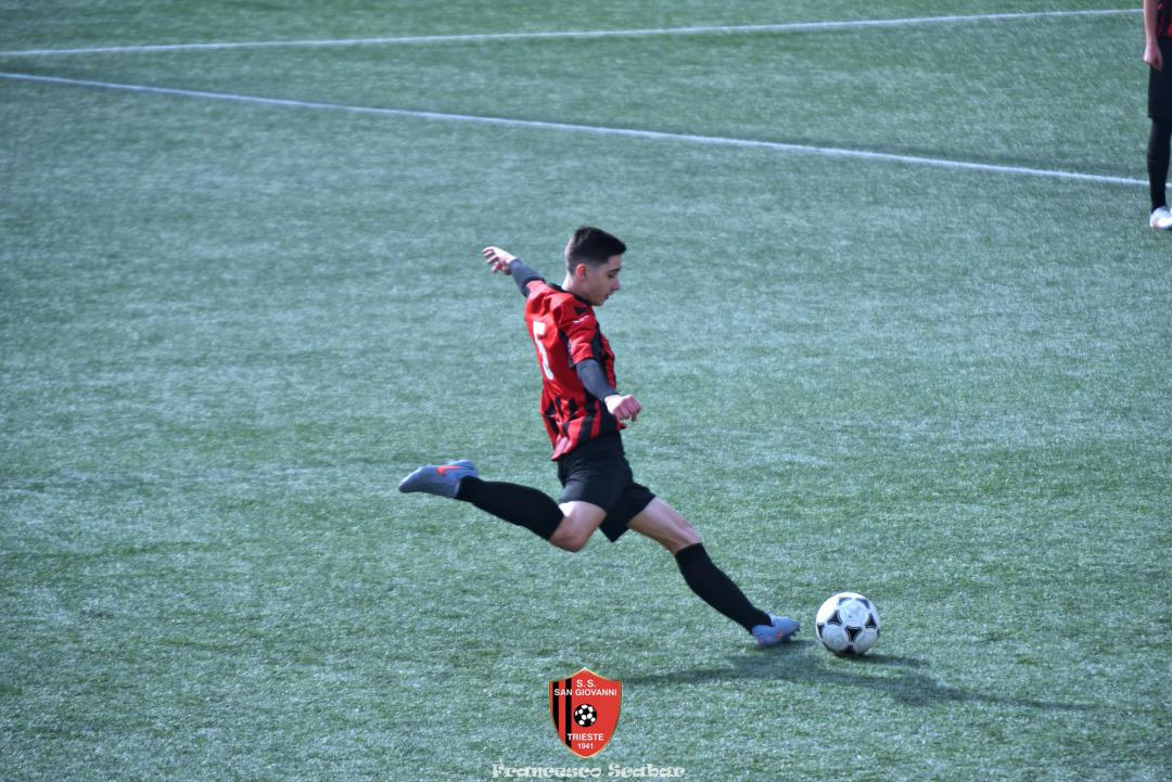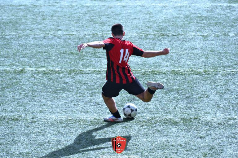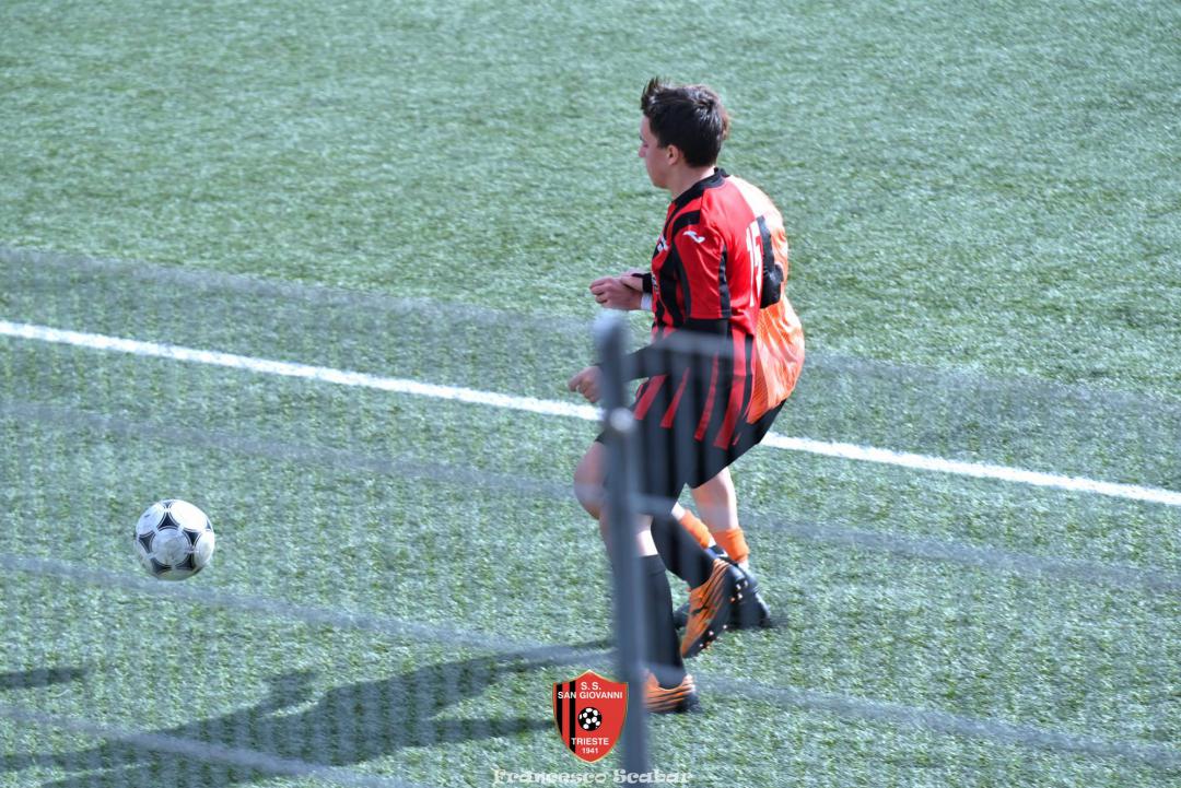 La prima emozione della partita arriva al quinto quando, sugli sviluppi di un corner, un tiro da fuori area di Tuan termina a lato, due minuti dopo una conclusione di Bledig termina fuori di poco alla sinistra di Posti. All’ottavo però la squadra di Massarutto passa avanti: su un cross dalla destra De Marchi incorna bene la palla di testa, Posti para con un riflesso felino ma sulla ribattuta Di Lenardo insacca l’1 a 0. Reagisce il Sangio al dodicesimo quando Peric calcia una punizione da lontano che però finisce di molto alta. Continua ad attaccare la squadra in maglia arancio: al 18' un tiro di De Marchi dai trentacinque metri sfiora la traversa rossonera mentre al 21’ su corner da destra Dus calcia alto da buona posizione, un minuto dopo una punizione di Di Lenardo dai trenta metri non inquadra il bersaglio. Al 29’ però la Manzanese segna il secondo gol: la difesa del Sangio si lascia sorprendere sul settore di destra, D’Osualdo crossa con il mancino sul secondo palo dove Di Lenardo, liberissimo, insacca il 2 a 0. Un minuto dopo però il San Giovanni potrebbe rientrare in corsia quando El Hachejaj scappa sulla destra, mette un pallone sulla testa di Colladej che colpisce una clamorosa traversa, l’ennesima di questa disgraziata stagione! La partita si spegne fino al 38' quando una punizione di Bledig viene deviata da Posti, al 41’ un altro calcio di punizione (questa volta da posizione deviata) calciato da Di Lenardo trova una superba respinta del portiere rossonero e su quest’azione si chiude un primo tempo in cui la squadra friulana conduce 2 a 0.
