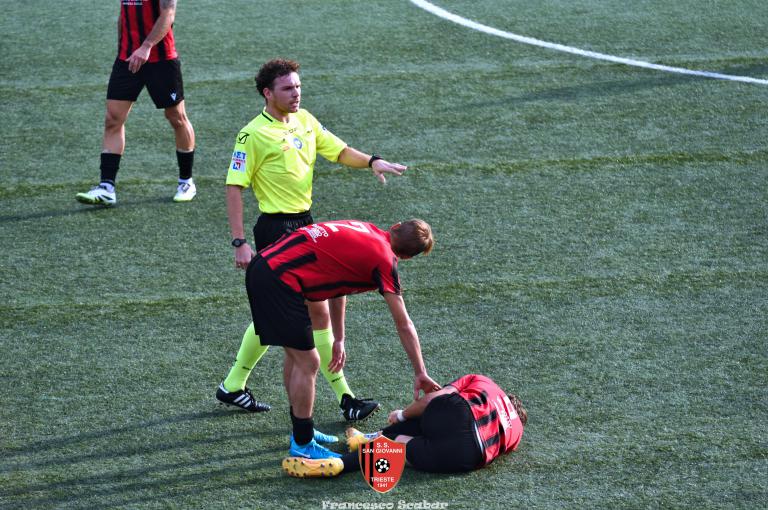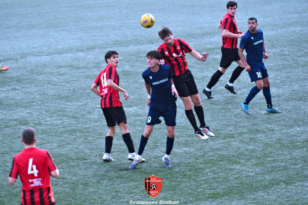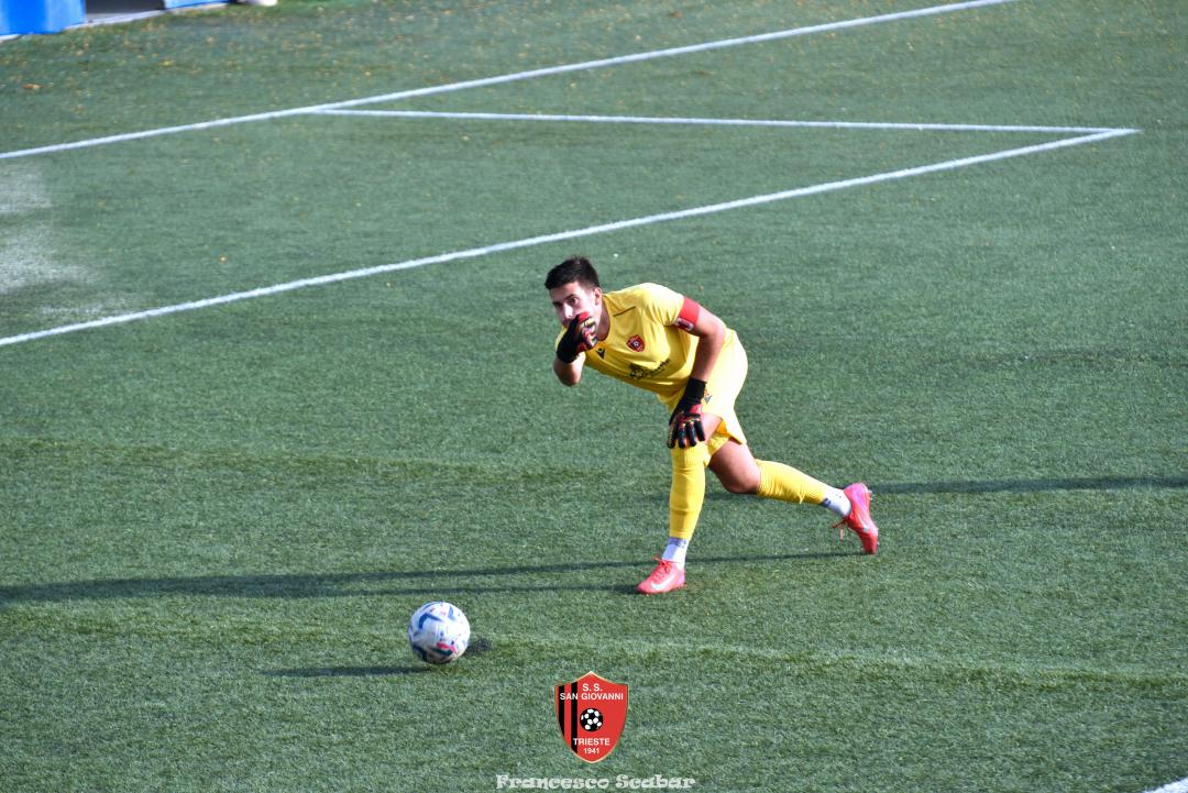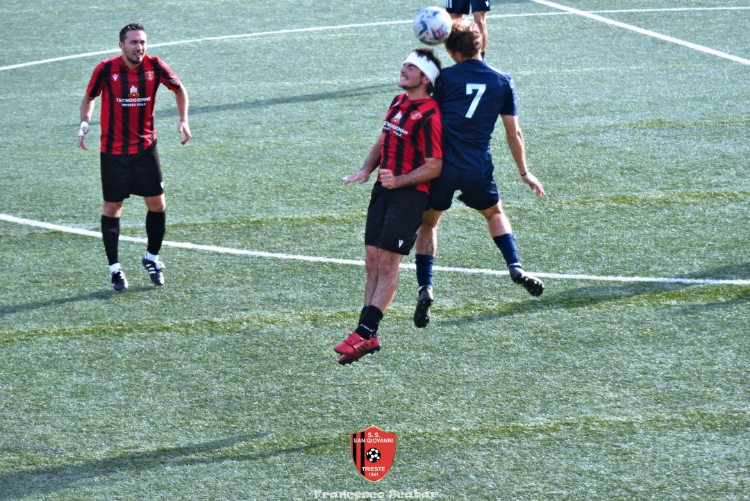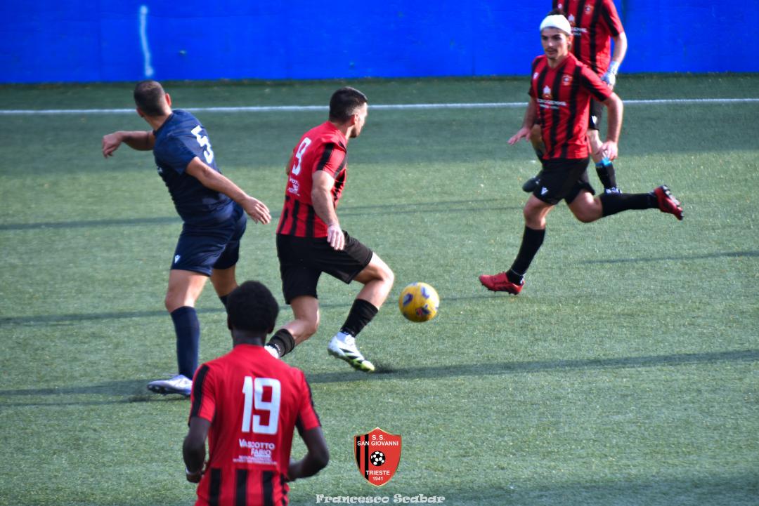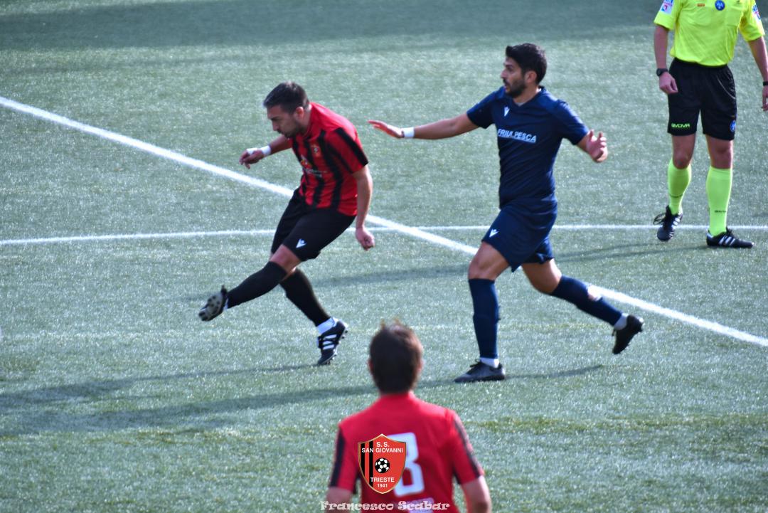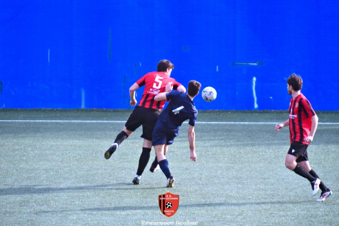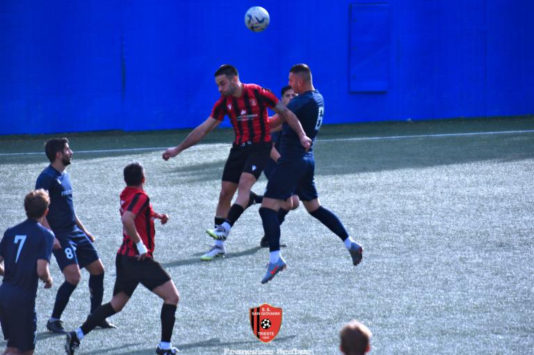 Nella ripresa parte subito forte la formazione Maranese: al 46’ sponda di Kabine per Di Lorenzo il cui tiro viene parato in presa da Aiello. Al 51’ una conclusione di Nardella viene murata con le braccia da Gridel che però erano attaccate al corpo del nostro dieci, l’arbitro non assegna il rigore tra le proteste avversarie. Continua il gioco quasi accademico della squadra di Popesso: al 58’ un tiro di Turchetti finisce alto dopo un’elaborata azione. Lentamente però il Sangio alza il baricentro fino a rendersi pericoloso al 16’ quando su un lungo traversone di Forza, Stanivuk sbaglia i tempi dell’uscita ma Sabadin manda il pallone di testa fuori. Al 70’ Kabine cerca goffamente un contatto in area di rigore rossonera cadendo platealmente, l’arbitro non abbocca e sul ribaltamento di fronte il San Giovanni trova il pareggio con una conclusione di prepotenza del neoentrato Iogna Prat che segna così il 2 a 2. Al 74’ il Sangio va vicino al 3 a 2: cross teso di Forza dalla sinistra, Gridel calcia la palla d’esterno destro (venendo ostacolato forse fallosamente da un avversario) che però si spegne sul fondo alla destra di Stanivuk. Al 79’ arriva così la doccia gelata del 3 a 2 per la Maranese: i blu nascondono il pallone con una lunga ed intricata azione in cui gli attaccanti toccano almeno tre volte di prima il pallone che finisce prima sulla testa di Dukic e poi in fondo al sacco, davvero complimenti per la splendida azione! Più fortunoso invece il 4 a 2 segnato sempre da Dukic all’84’: su una punizione dalla destra di Turchetti il numero sei stacca di testa, il pallone rimbalza su Andrea Vascotto e poi finisce beffardamente in fondo al sacco. Nonostante il doppio svantaggio il Sangio continua ad attaccare: al 49’ un tiro dai trenta metri di Marincich trova la grande risposta di Stanivuk che para con la manona alla sua destra, un minuto dopo Vouk vuole replicare la prodezza di Vendola della scorsa settimana ma il suo tiro trova la mano di Stanivouk e dopo la traversa.