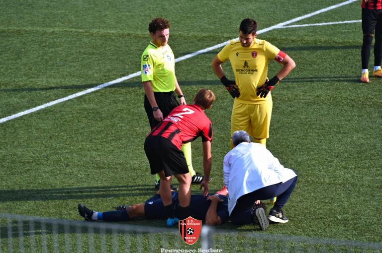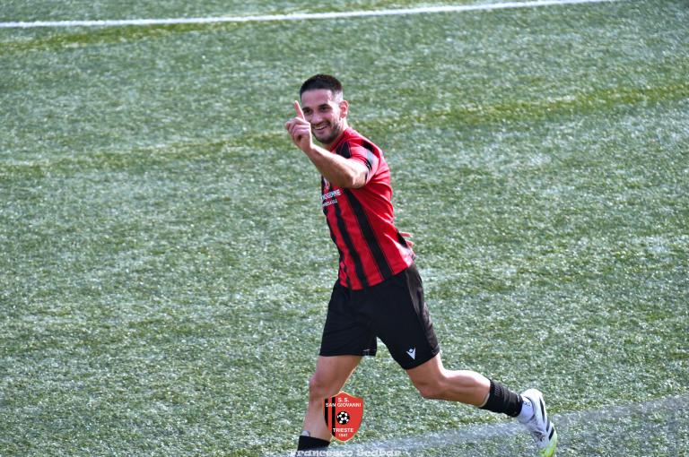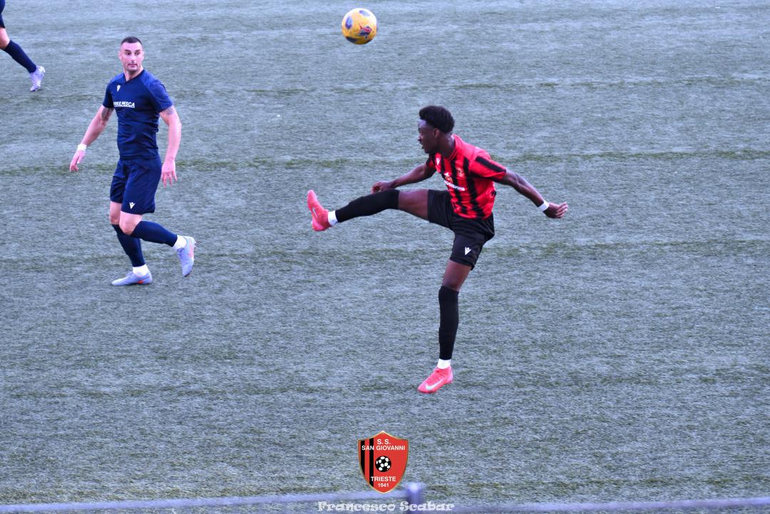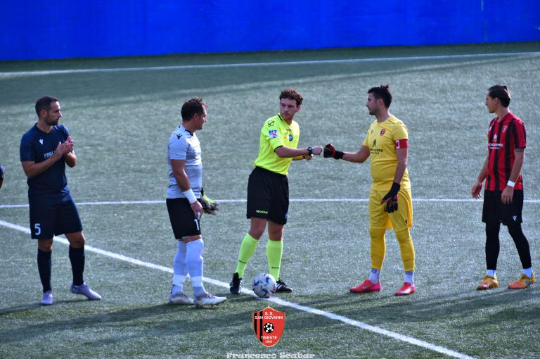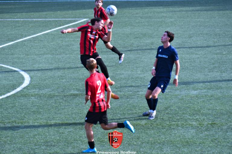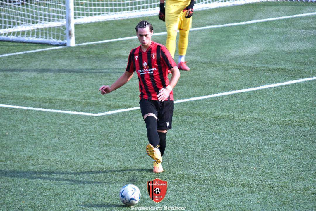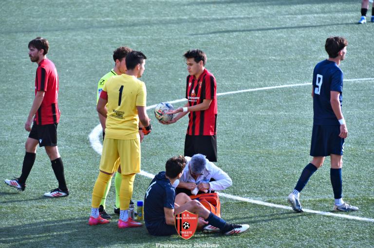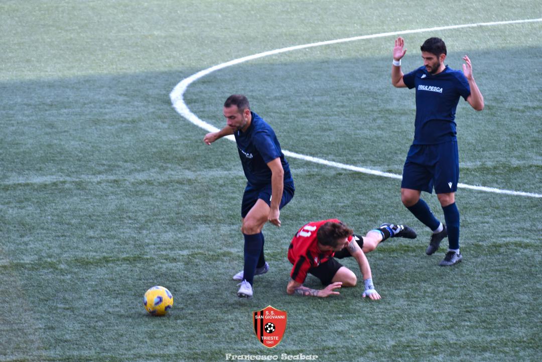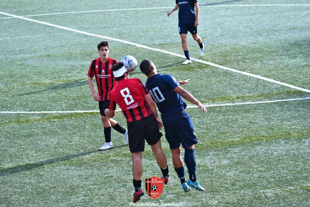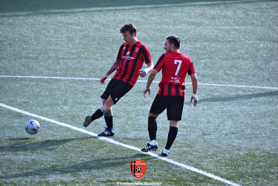 Nella ripresa parte subito forte la formazione Maranese: al 46’ sponda di Kabine per Di Lorenzo il cui tiro viene parato in presa da Aiello. Al 51’ una conclusione di Nardella viene murata con le braccia da Gridel che però erano attaccate al corpo del nostro dieci, l’arbitro non assegna il rigore tra le proteste avversarie. Continua il gioco quasi accademico della squadra di Popesso: al 58’ un tiro di Turchetti finisce alto dopo un’elaborata azione. Lentamente però il Sangio alza il baricentro fino a rendersi pericoloso al 16’ quando su un lungo traversone di Forza, Stanivuk sbaglia i tempi dell’uscita ma Sabadin manda il pallone di testa fuori. Al 70’ Kabine cerca goffamente un contatto in area di rigore rossonera cadendo platealmente, l’arbitro non abbocca e sul ribaltamento di fronte il San Giovanni trova il pareggio con una conclusione di prepotenza del neoentrato Iogna Prat che segna così il 2 a 2. Al 74’ il Sangio va vicino al 3 a 2: cross teso di Forza dalla sinistra, Gridel calcia la palla d’esterno destro (venendo ostacolato forse fallosamente da un avversario) che però si spegne sul fondo alla destra di Stanivuk. Al 79’ arriva così la doccia gelata del 3 a 2 per la Maranese: i blu nascondono il pallone con una lunga ed intricata azione in cui gli attaccanti toccano almeno tre volte di prima il pallone che finisce prima sulla testa di Dukic e poi in fondo al sacco, davvero complimenti per la splendida azione! Più fortunoso invece il 4 a 2 segnato sempre da Dukic all’84’: su una punizione dalla destra di Turchetti il numero sei stacca di testa, il pallone rimbalza su Andrea Vascotto e poi finisce beffardamente in fondo al sacco. Nonostante il doppio svantaggio il Sangio continua ad attaccare: al 49’ un tiro dai trenta metri di Marincich trova la grande risposta di Stanivuk che para con la manona alla sua destra, un minuto dopo Vouk vuole replicare la prodezza di Vendola della scorsa settimana ma il suo tiro trova la mano di Stanivouk e dopo la traversa.