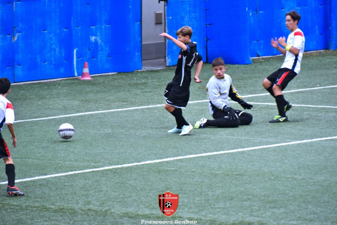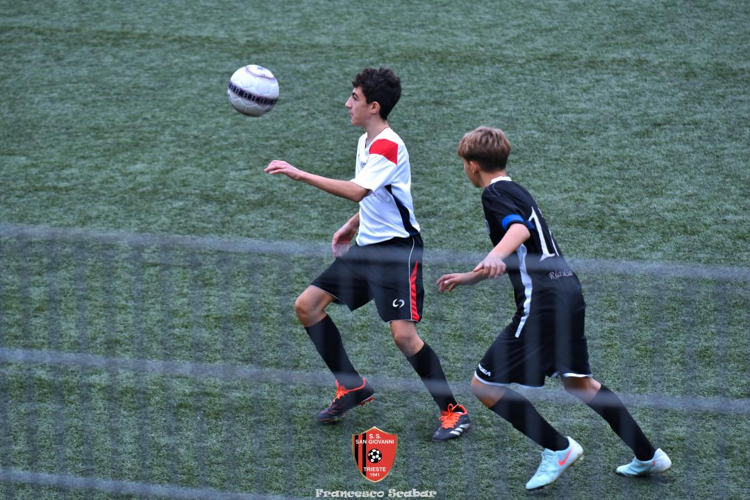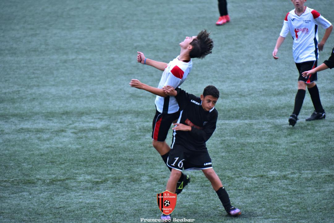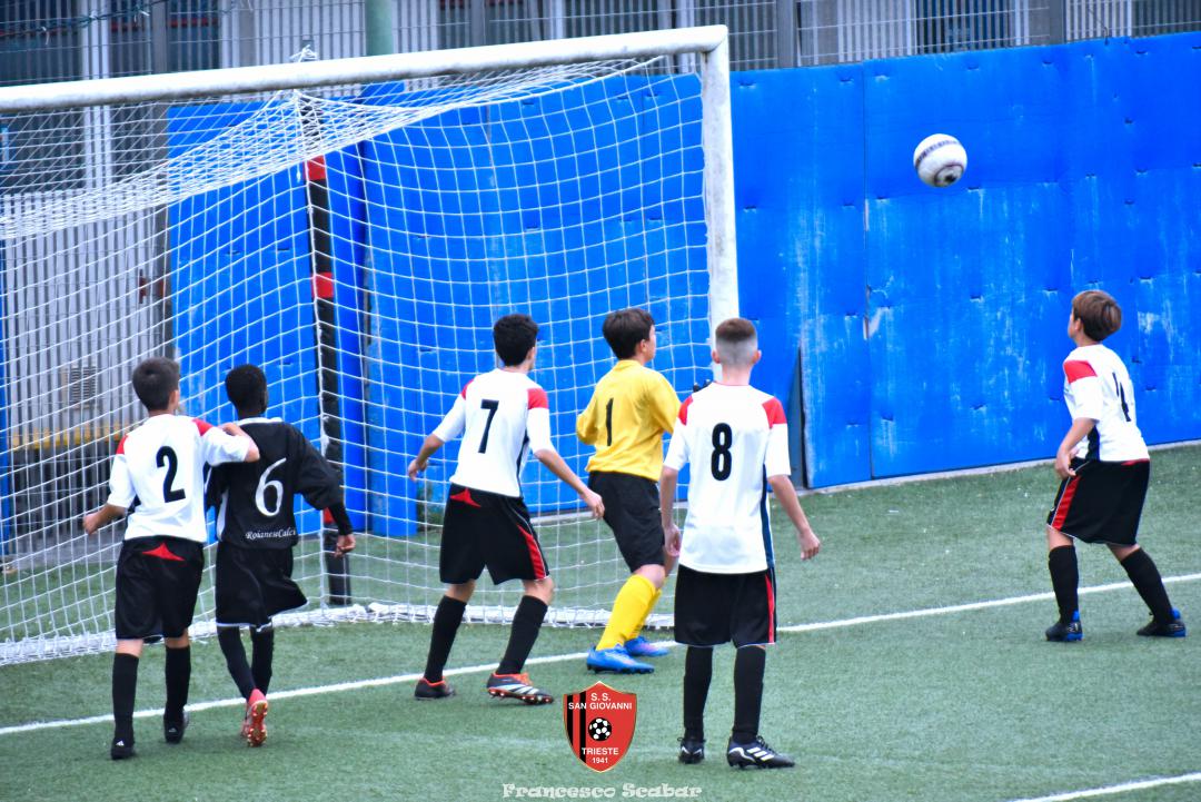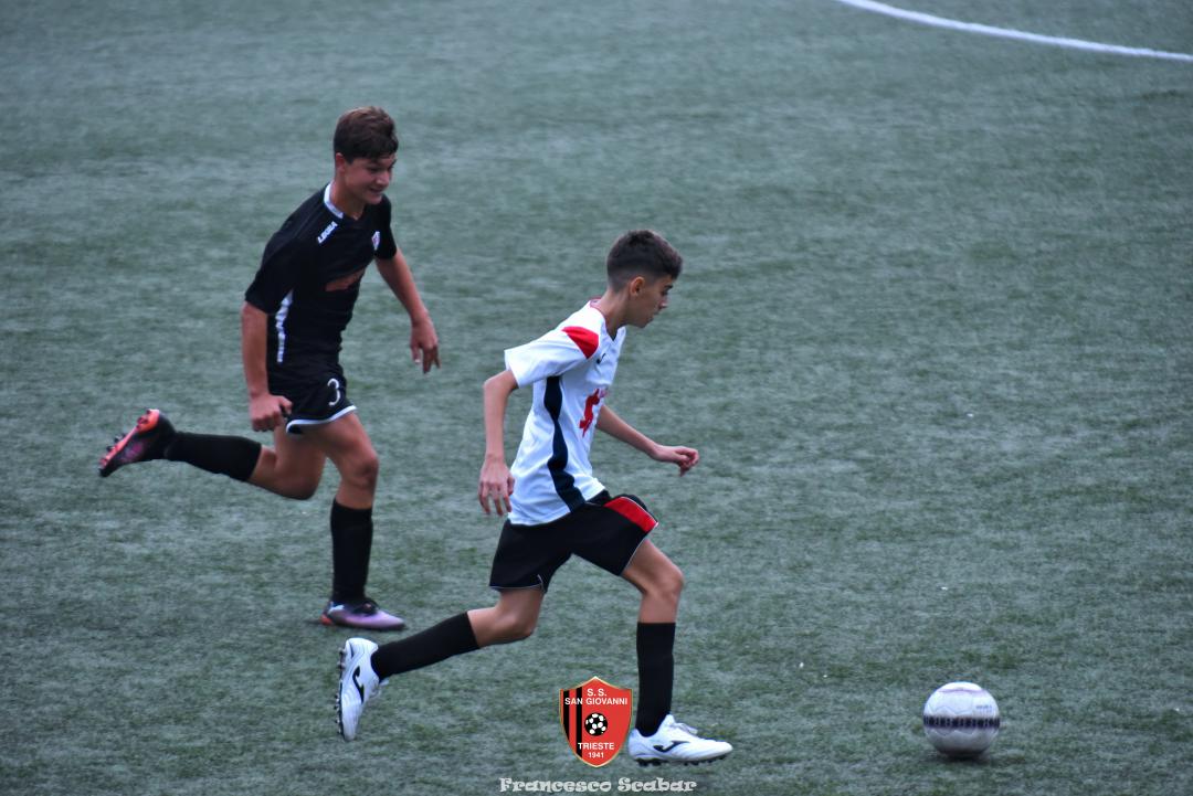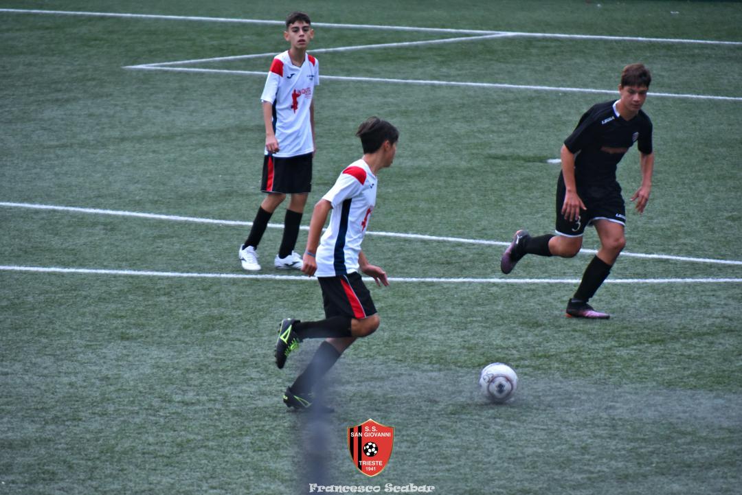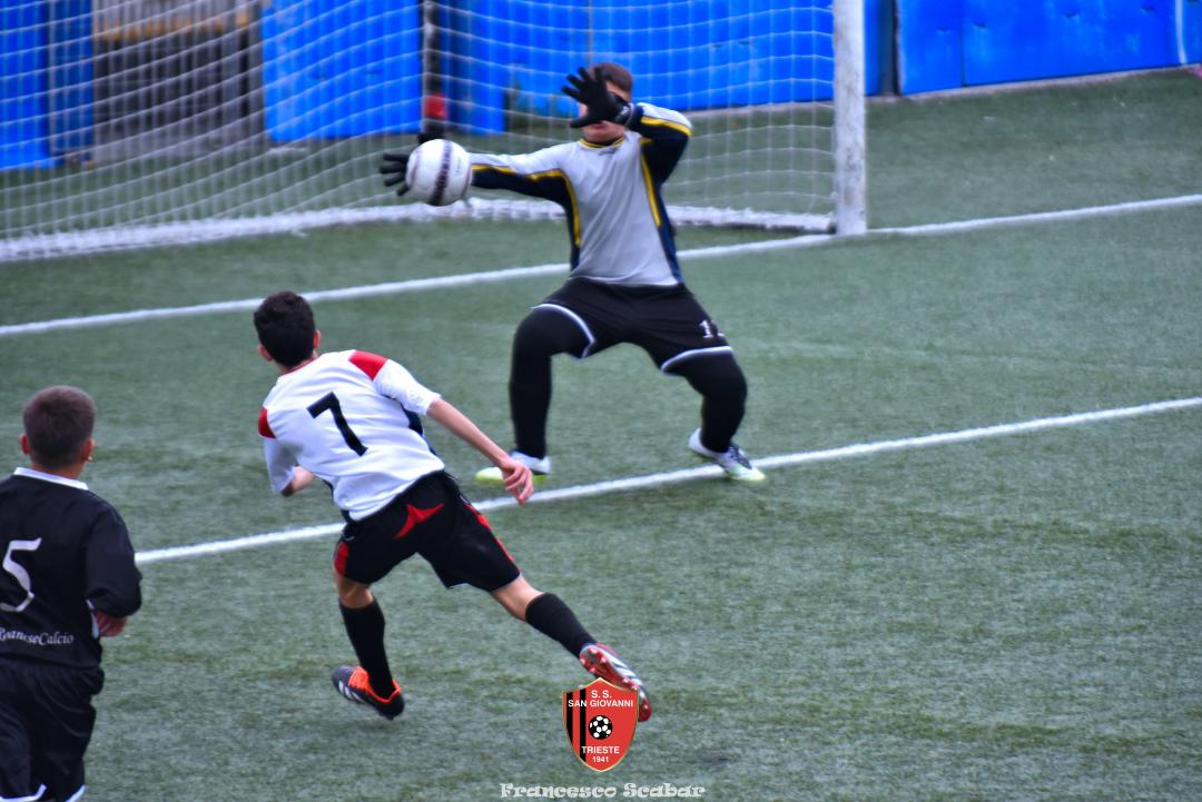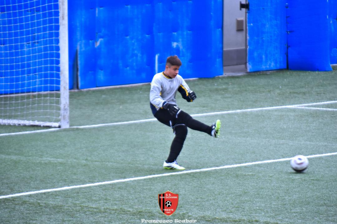 La partita parte subito a mille con entrambe le squadre che giocano a viso aperto, il San Giovanni colleziona almeno cinque occasioni da gol con Triolo e Serli che però trovano o i guantoni del portiere avversario Buljigic oppure i montanti a negare la gioia del gol, d’altro canto anche i bianconeri di Barzelatto non stanno a guardare collezionando almeno due grosse opportunità davanti alla porta di Rossi. La partita si sblocca al 28’ con una bella progressione di Davanzo che poi batte imparabilmente il portiere avversario. Al 34’ inizia il show personale di Botta che prima segna il 2 a 0 e poi due minuti dopo fa il bis personale con una grandissima ed irresistibile azione personale; si va così al riposo sul 3 a 0 San Giovanni.