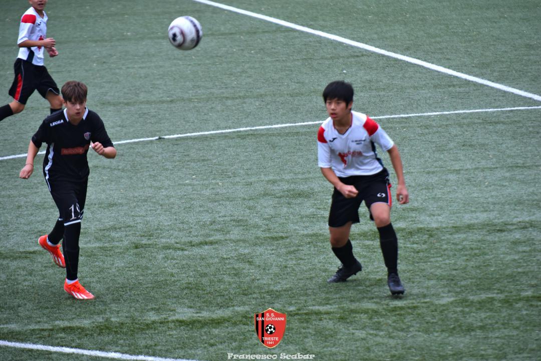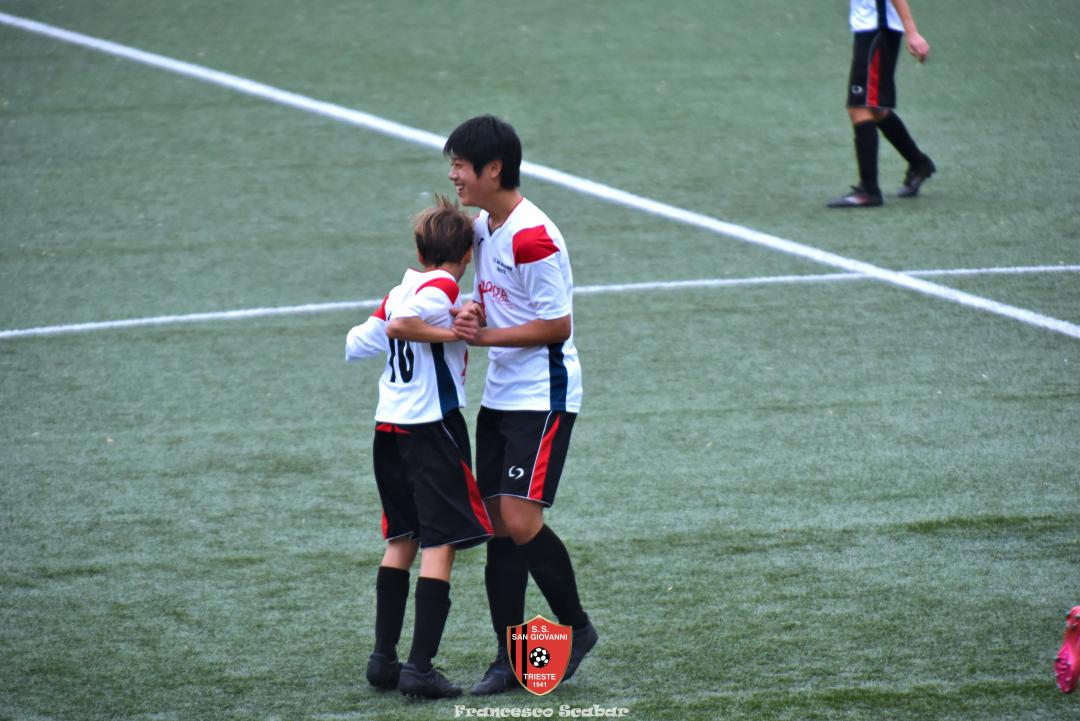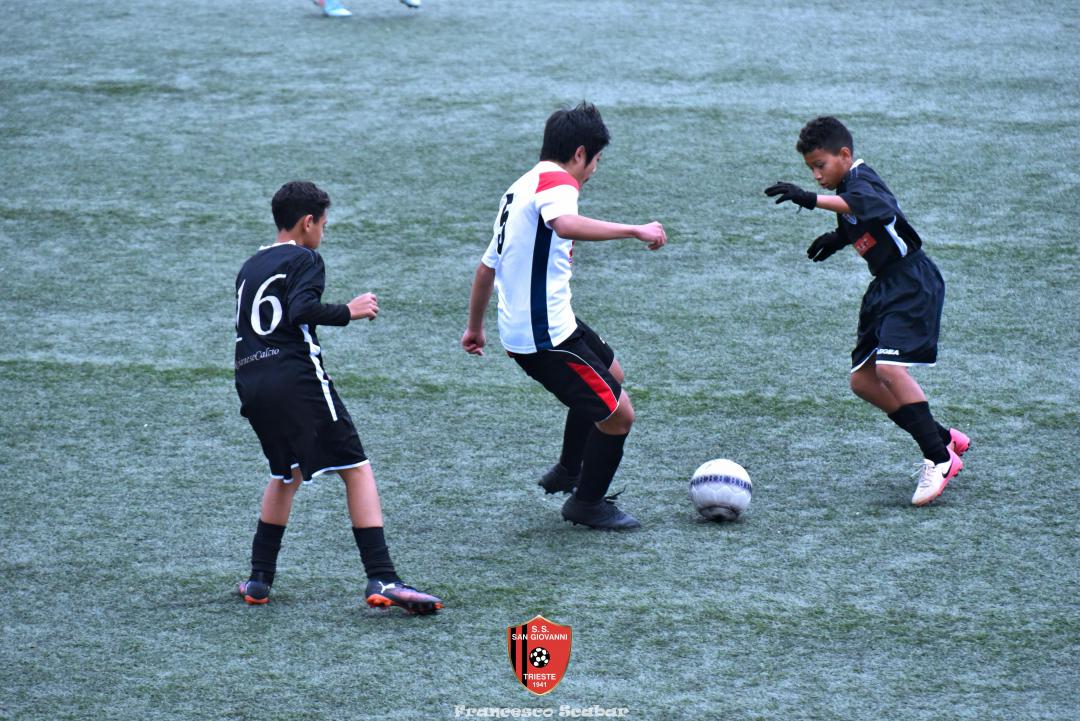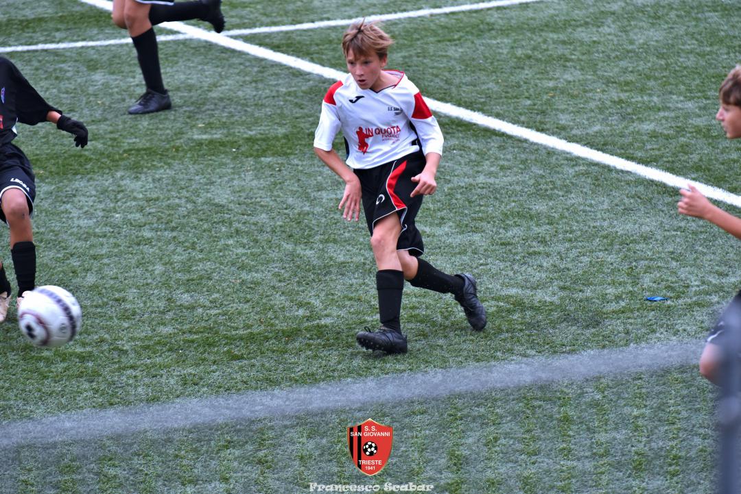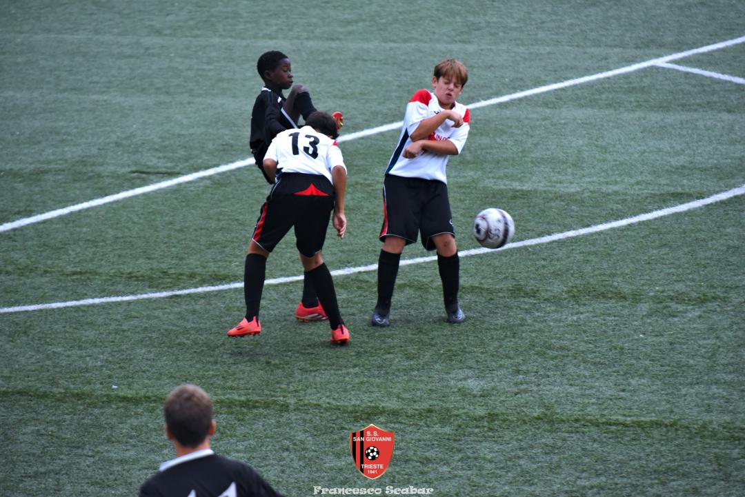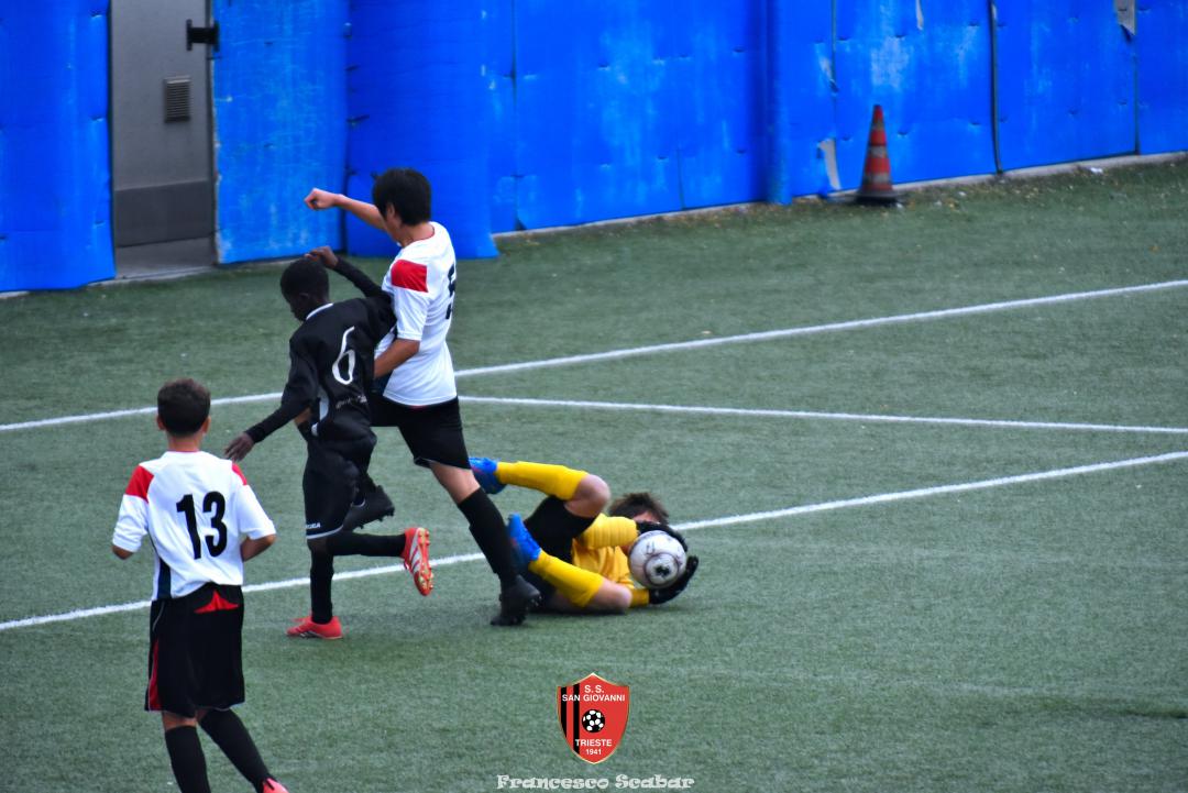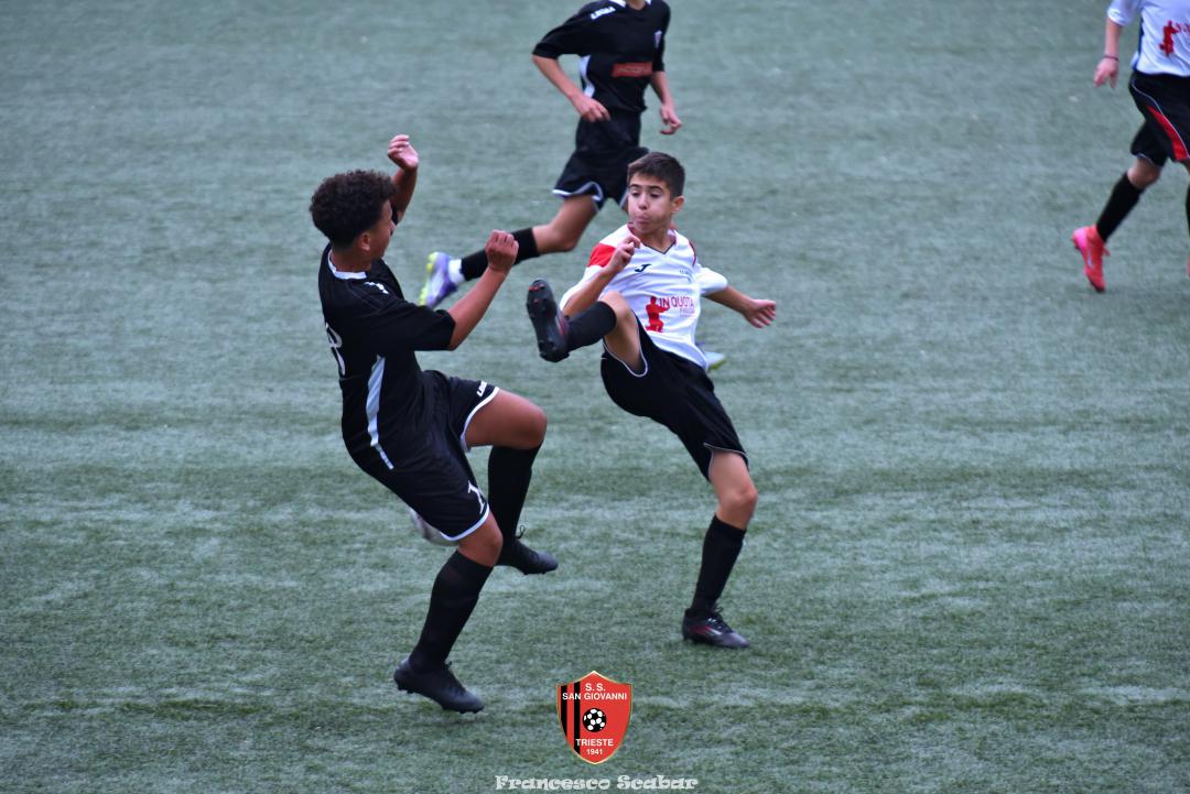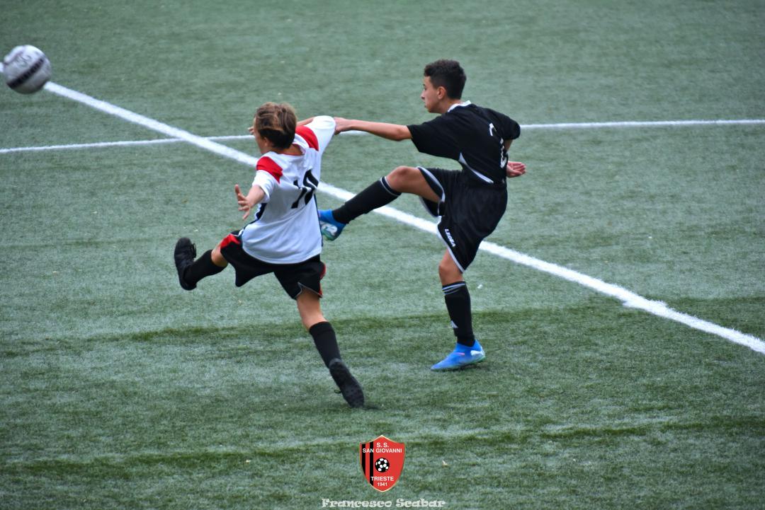 La partita parte subito a mille con entrambe le squadre che giocano a viso aperto, il San Giovanni colleziona almeno cinque occasioni da gol con Triolo e Serli che però trovano o i guantoni del portiere avversario Buljigic oppure i montanti a negare la gioia del gol, d’altro canto anche i bianconeri di Barzelatto non stanno a guardare collezionando almeno due grosse opportunità davanti alla porta di Rossi. La partita si sblocca al 28’ con una bella progressione di Davanzo che poi batte imparabilmente il portiere avversario. Al 34’ inizia il show personale di Botta che prima segna il 2 a 0 e poi due minuti dopo fa il bis personale con una grandissima ed irresistibile azione personale; si va così al riposo sul 3 a 0 San Giovanni.