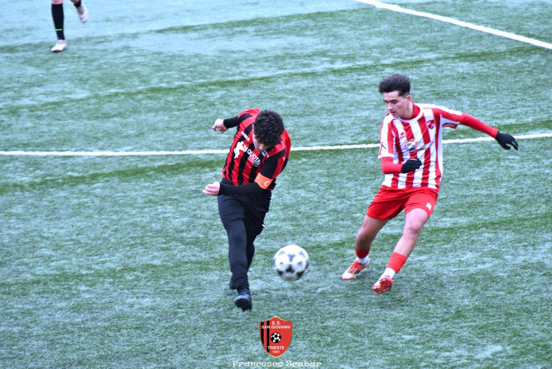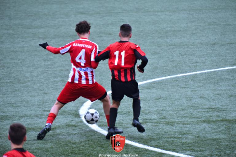 La ripresa inizia addirittura con il San Giovanni in attacco: Ibrahimi calcia da lontano ma il portiere Chiarotto para in presa. Un minuto dopo Trefas ci riprova con una cannonata da pochi passi ma Posti compie un autentico prodigio con il piede. Al 6’ però un tiro in diagonale di Camilotti vale il tris per la Sanvitese. Al 14’, sugli sviluppi di una mischia il neoentrato Cangialosi colpisce il palo con una conclusione a botta sicura. Al quarto d’ora un tiro da lontano di Turolo viene bloccato da Posti, al 17’ una conclusione del numero diciassette Rumino verso il primo palo termina a lato di mezzo metro. Al 29’ una botta in diagonale di Viel non inquadra la porta di Posti ma un minuto dopo in contropiede Cangialosi sigla il poker per la squadra ospite. Quattro minuti dopo segna Viel il 5 a 0 in sospetta posizione di fuorigioco. Al 35’ un tiro di Musliu viene bloccato da Posti, al 37’ però il portiere rossonero non blocca un tiro dal limite e Rubino sigla il sesto gol biancorosso. I rossoneri sono stremati e ad un minuto dall’80’ Di Biasi (migliore in campo assieme a Crozzoli) sbaglia un retropassaggio di testa e Cangialosi scappa fino davanti a posti siglando il 7 a 0 finale.