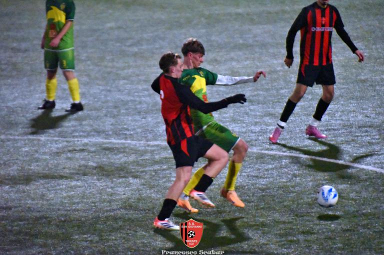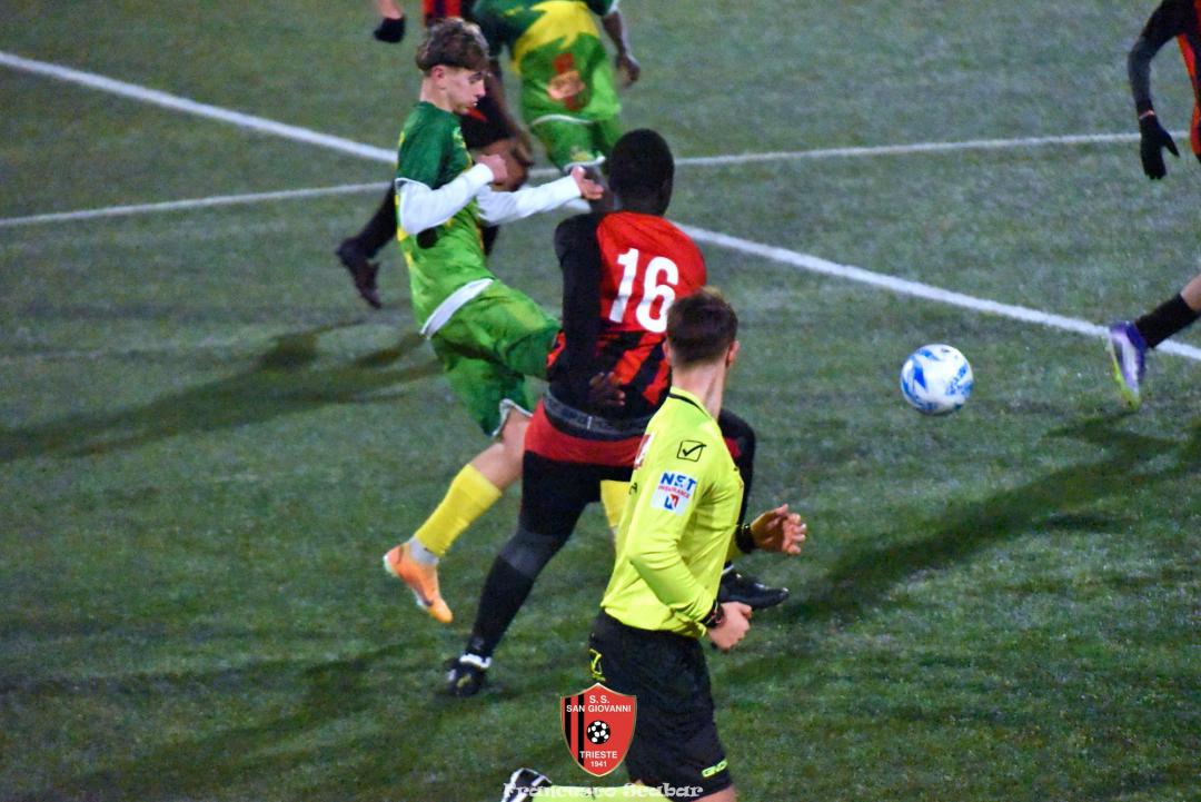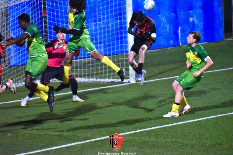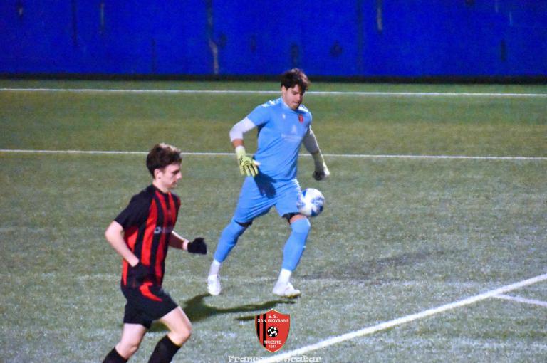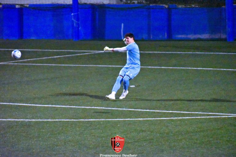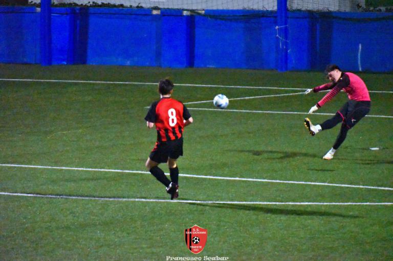 La ripresa parte con il freno a mano più tirato e bisogna aspettare il 52’ per il primo brivido, lo regala Tientcheu con un retropassaggio maligno che Blason non intercetta spegnendosi di pochissimo aldilà della porta. Al 55’ Venier serve Camporeale che calcia di mancino un fendente che si spegne di pochissimo sulla sinistra di Blason. Al 63’ su una punizione dalla destra Bandel calcia da solo in area ma la palla s’impenna, causa rimbalzo, sopra alla porta rossonera. Al minuto settanta, in un momento d’impasse della gara, giunge il 3 a 1 rossonero: Lapasin calcia un pallone su una punizione da oltre metà campo che, dopo un lungo arcobaleno, termina il suo percorso proprio sotto all’incrocio destro della porta del Sistiana, che golazo per il nostro Lapa! Avanti di due reti i rossoneri giocano più in scioltezza e al 74’, su un corner di Camporeale a rientrare, D’Introno viene anticipato da Bandel che devia la sfera alle spalle del suo portiere, 4 a 1. Nel finale la partita torna a farsi incandescente: all’83’ Alif salta bene di testa su un corner dalla destra, il pallone dopo aver schizzato a terra sembra finire sotto alla traversa ma un colpo di testa di capitan D’Introno salva tutto. Un minuto dopo ci riprova lo stesso capitano con il mancino ma la mira non è fortunata. Sessanta secondi dopo ci prova Aydemir che con il destro obbliga Blason alla presa. All’89’ Crevatin converge sul mancino e calcia un diagonale che Stefanucci blocca in tuffo, un minuto dopo lo stesso numero uno rossonero sbarra la strada al bomber dei delfini con un prodigioso intervento di piede. Al 91’ il neoentrato Gelicrisio calcia un gran bel destro che va ad incocciare contro la traversa: è l’ultima occasione di una gran bella partita che è finita ancora una volta positivamente per i nostri colori. Sabato prossimo, contro la Pro Gorizia, si deciderà una bella fetta di questo campionato per i nostri ragazzi.