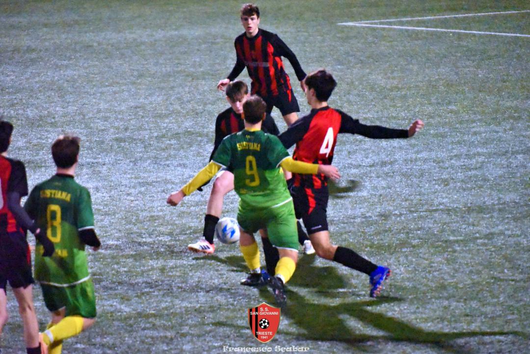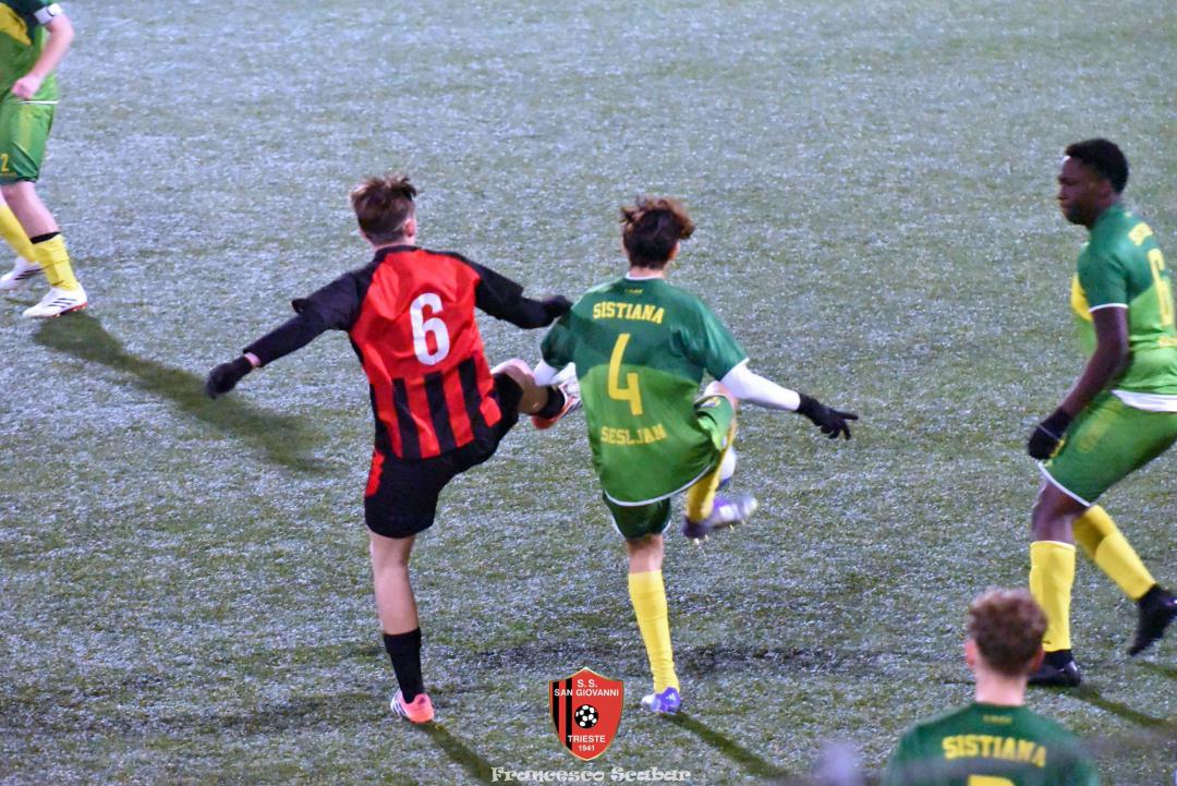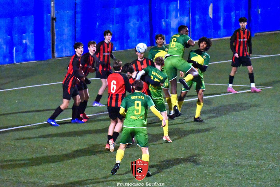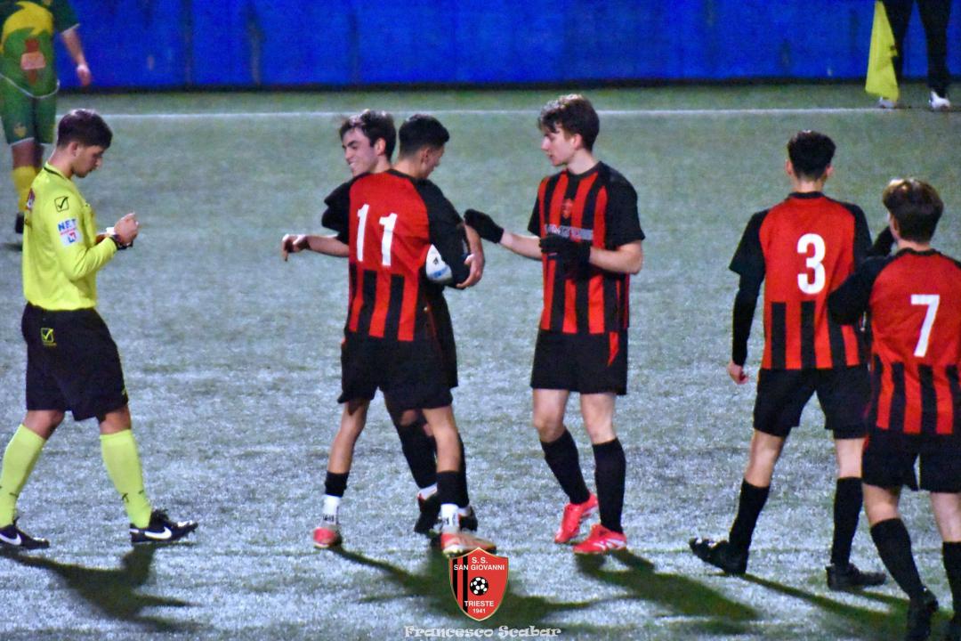 Gli Juniores Under 19 di mister De Castro hanno fatto tredici! Nonostante abbiano dovuto faticare e sudare più del previsto, D’Introno e compagni sono riusciti a risolvere al meglio anche la pratica Sistiana, compagine che già all’andata aveva messo in seria difficoltà i rossoneri. Il punteggio finale di 4 a 1 non rispecchia una gara che è stata a lunga equilibrata e che è stata decisa solamente da episodi che hanno premiato i rossoneri. Se nel turno scorso il 2 a 1 contro il Campanelle è stato fin troppo stretto perché l’attacco rossonero si è divorato un sacco di occasioni da gol, questa volta la squadra di De Castro è stata davvero cinica e chirurgica nel battere il proprio avversario.