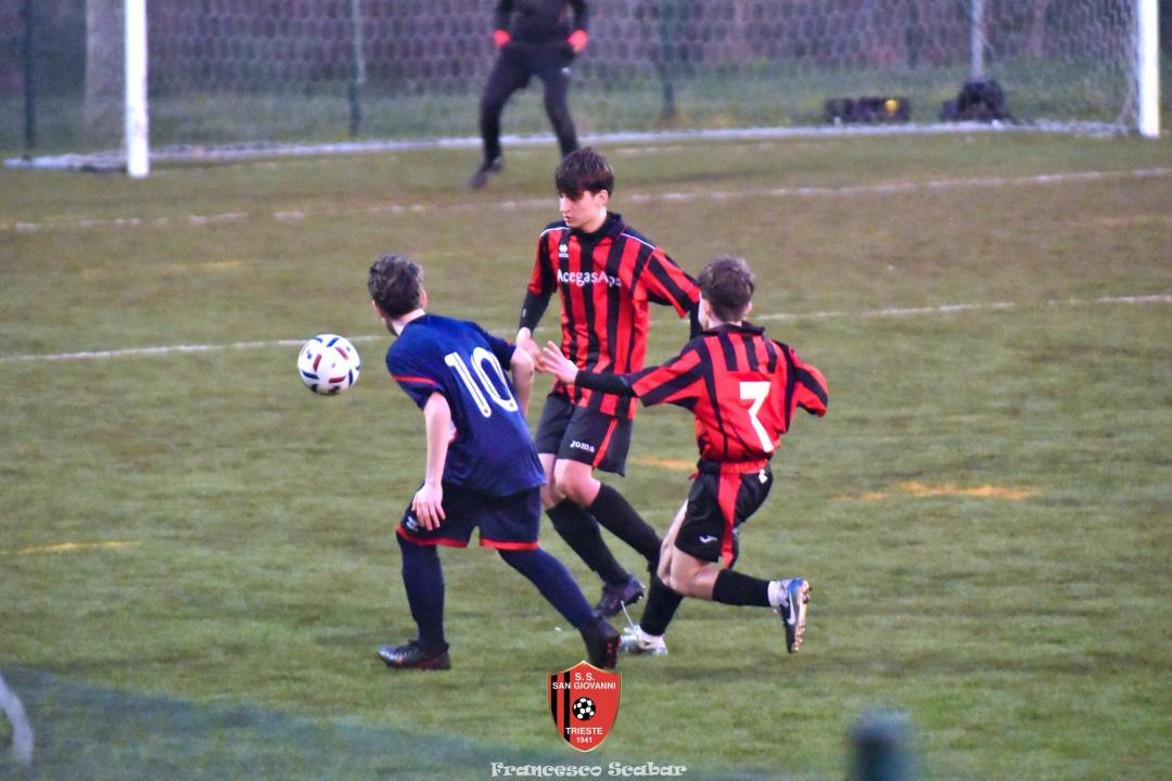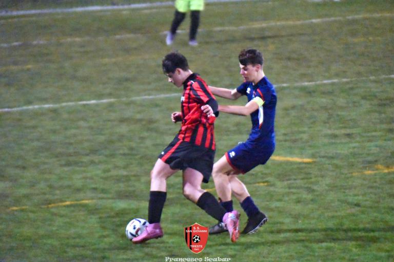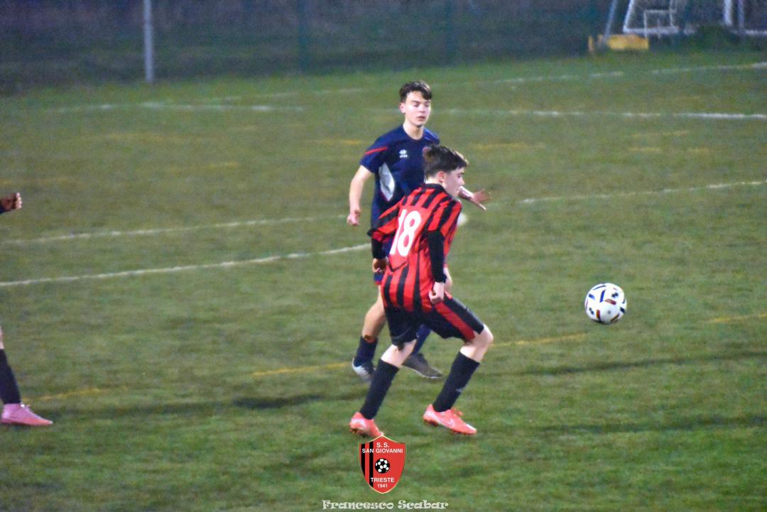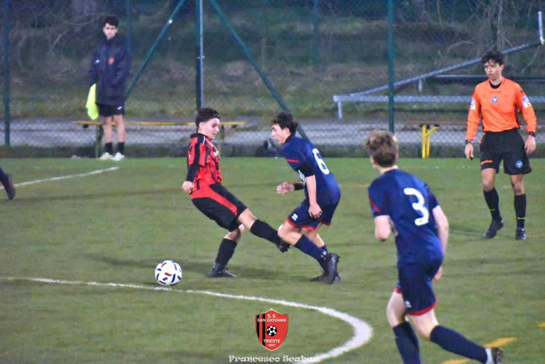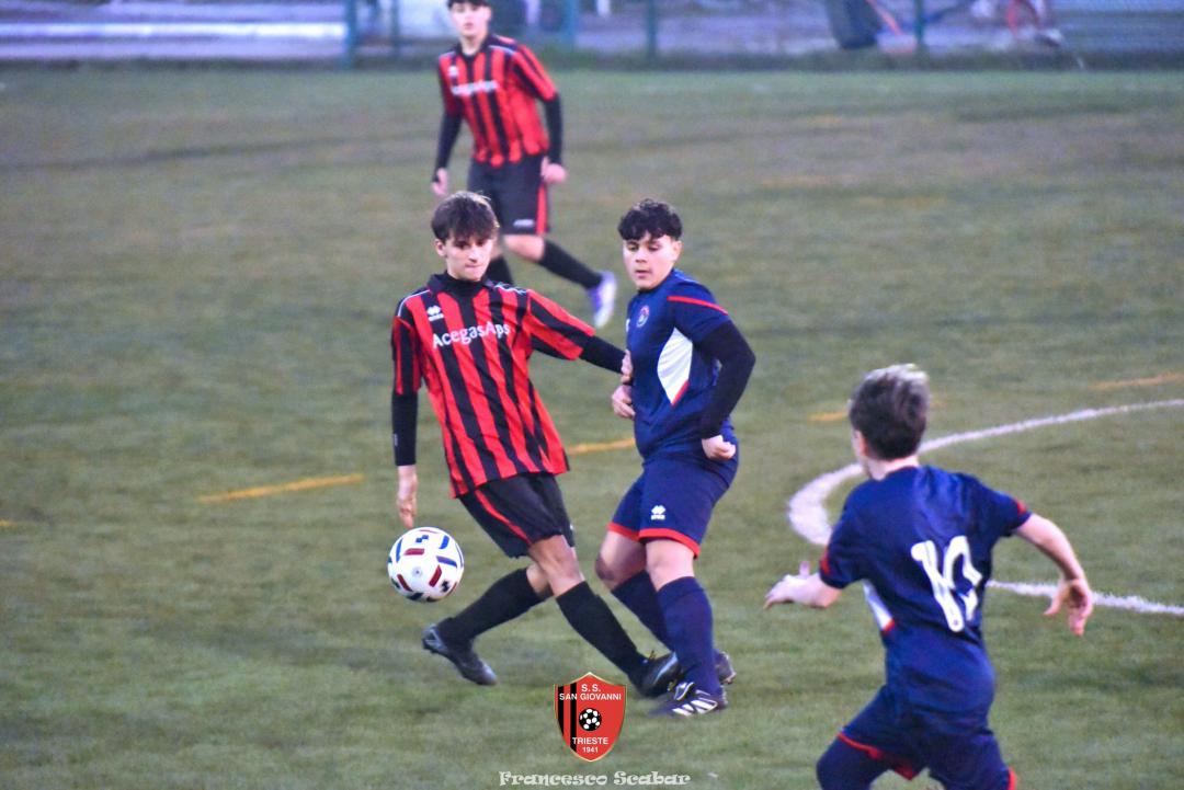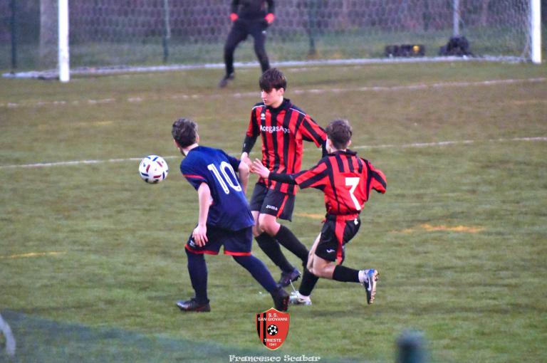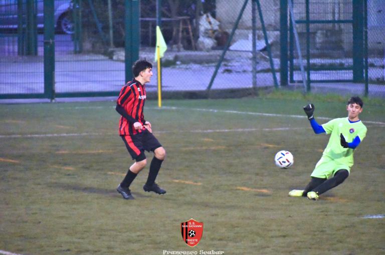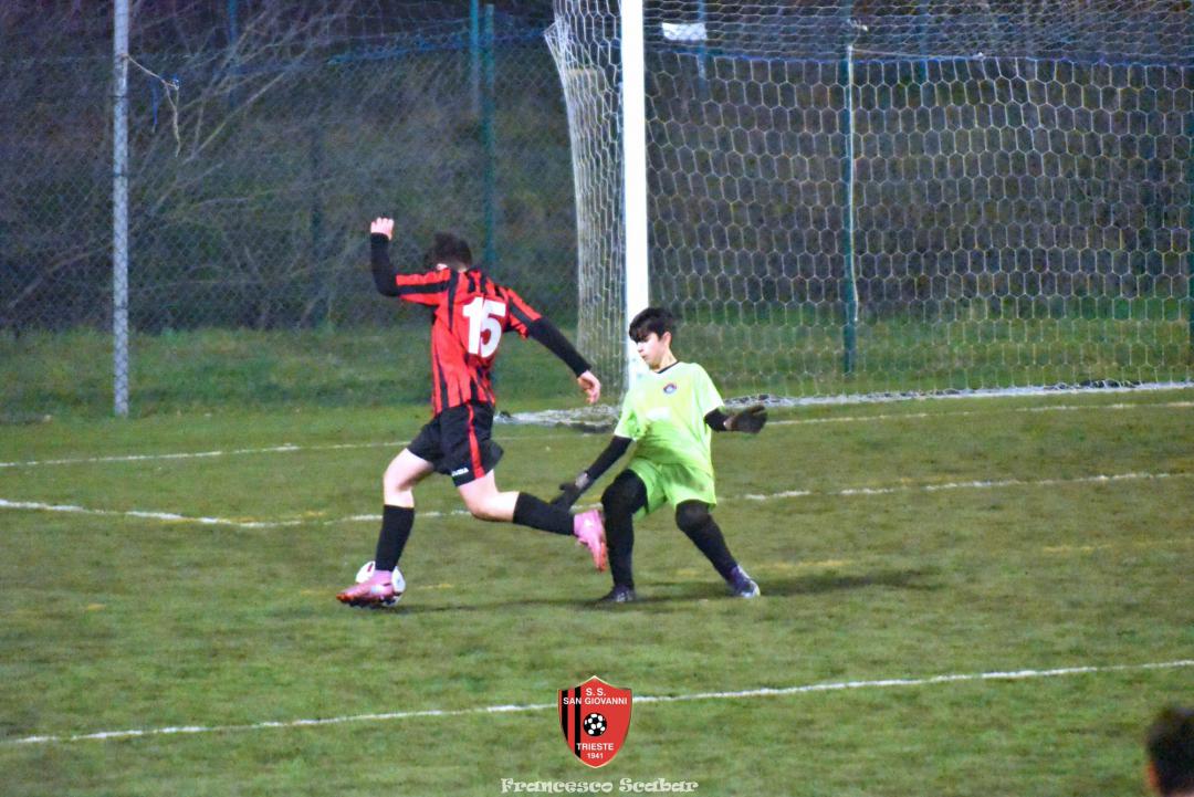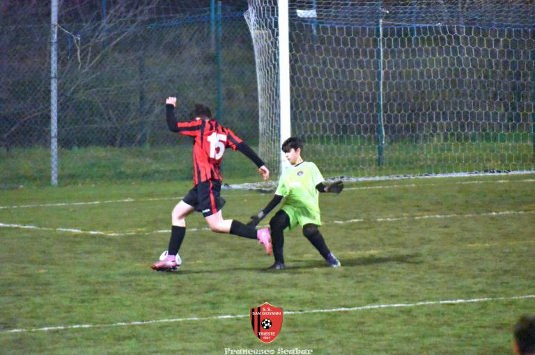Nel recupero della sedicesima giornata, disputata martedì 24 febbraio sul Campo Rouna di Prosecco, il San Giovanni Under 15 di mister Antonio Giorgi archivia la pratica San Giusto Academy rifilando cinque gol alla formazione avversaria, penultima in graduatoria. Non è stata brillante la partita dei ragazzi in casacca rossonera che hanno giocato a tratti in modo assai abulico, ma ciò che conta era solamente vincere e portarsi momentaneamente due lunghezze sopra lo Zarja (con una sfida in meno).