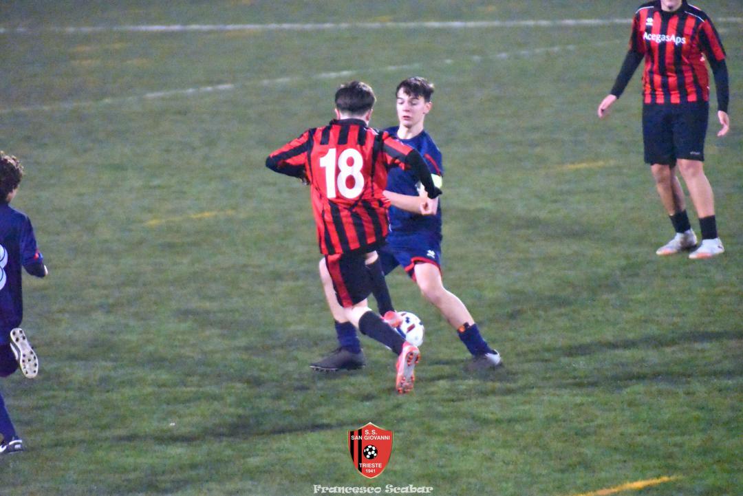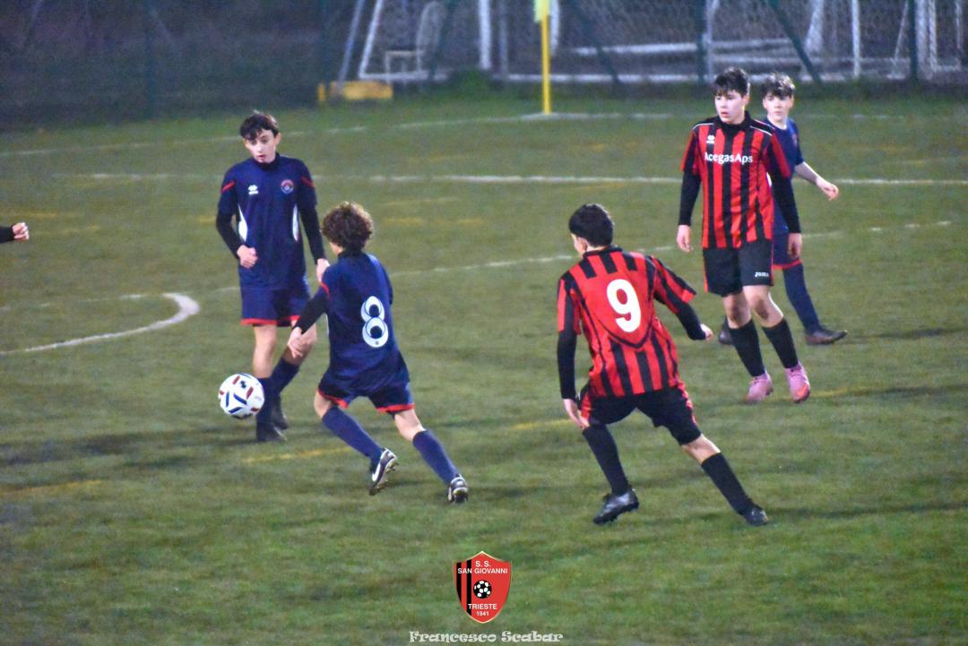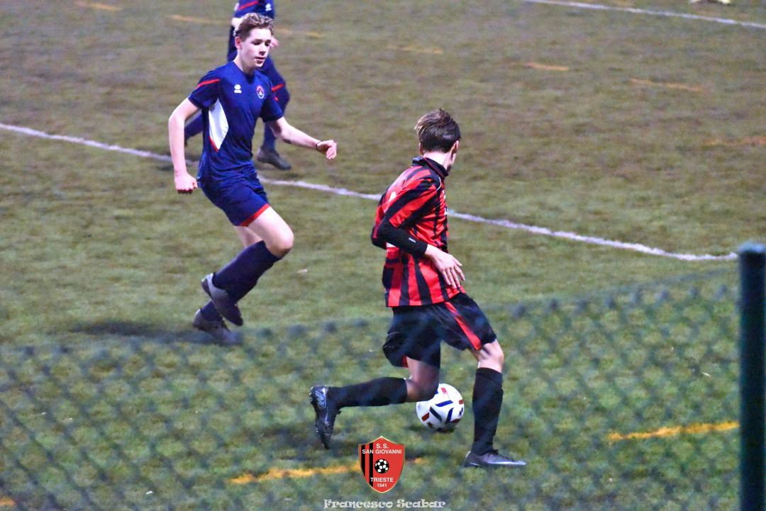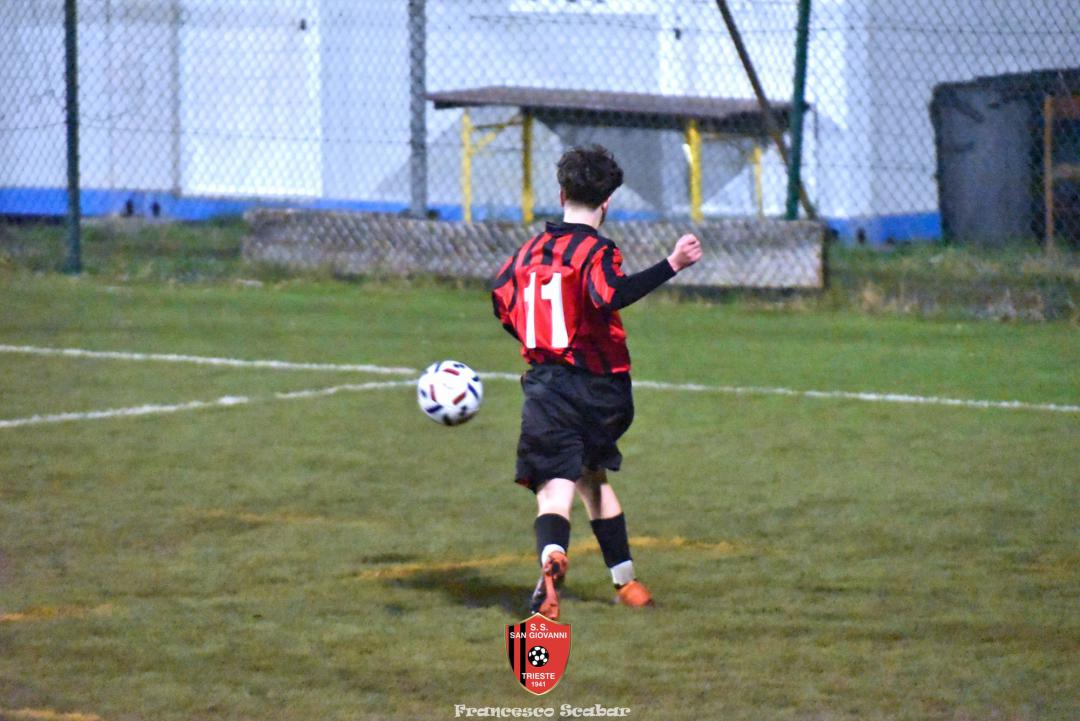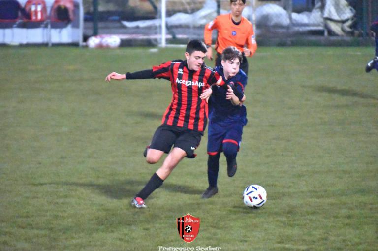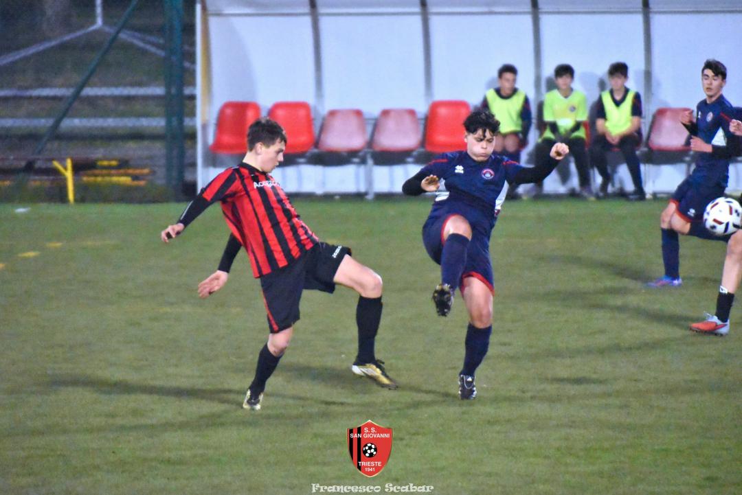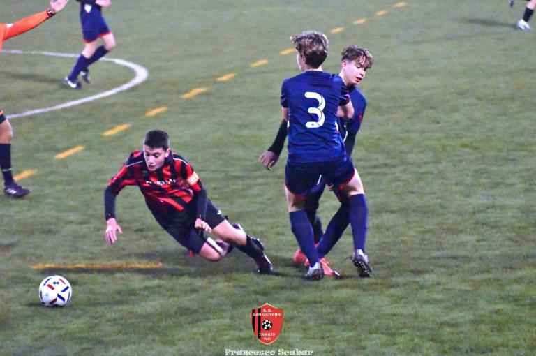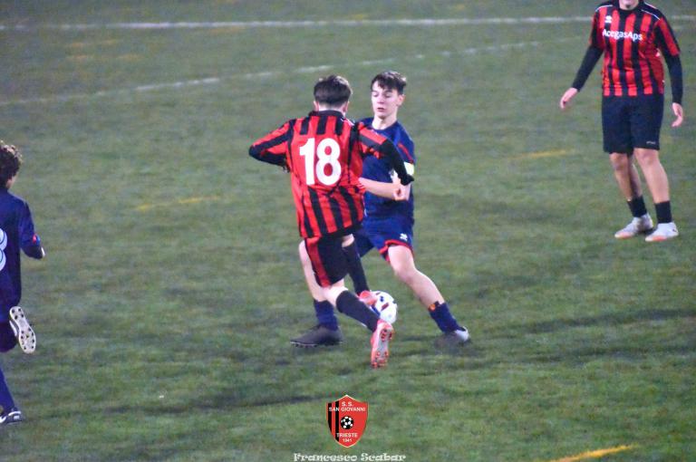 Nel recupero della sedicesima giornata, disputata martedì 24 febbraio sul Campo Rouna di Prosecco, il San Giovanni Under 15 di mister Antonio Giorgi archivia la pratica San Giusto Academy rifilando cinque gol alla formazione avversaria, penultima in graduatoria. Non è stata brillante la partita dei ragazzi in casacca rossonera che hanno giocato a tratti in modo assai abulico, ma ciò che conta era solamente vincere e portarsi momentaneamente due lunghezze sopra lo Zarja (con una sfida in meno).