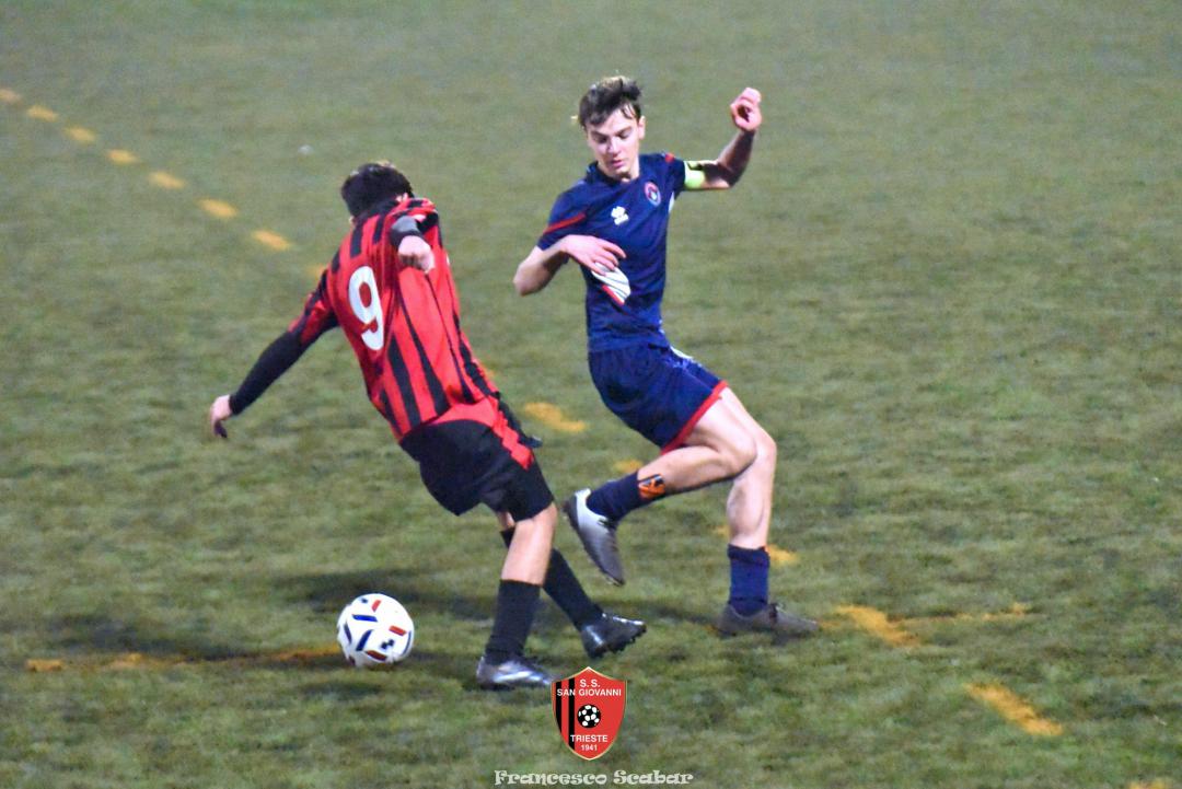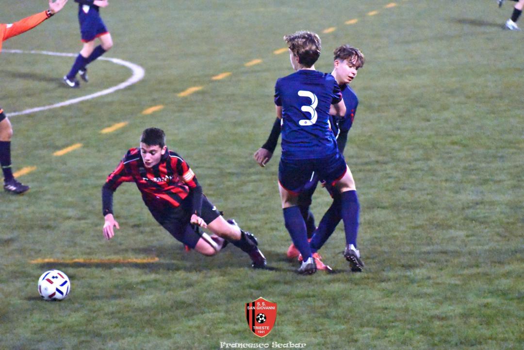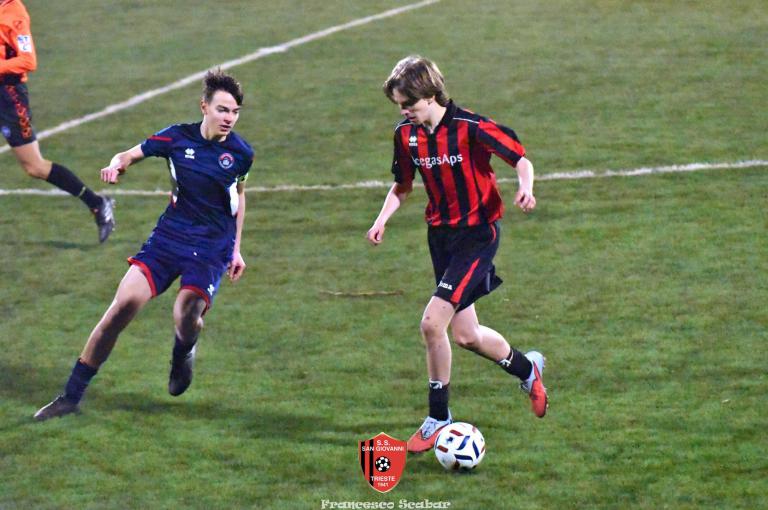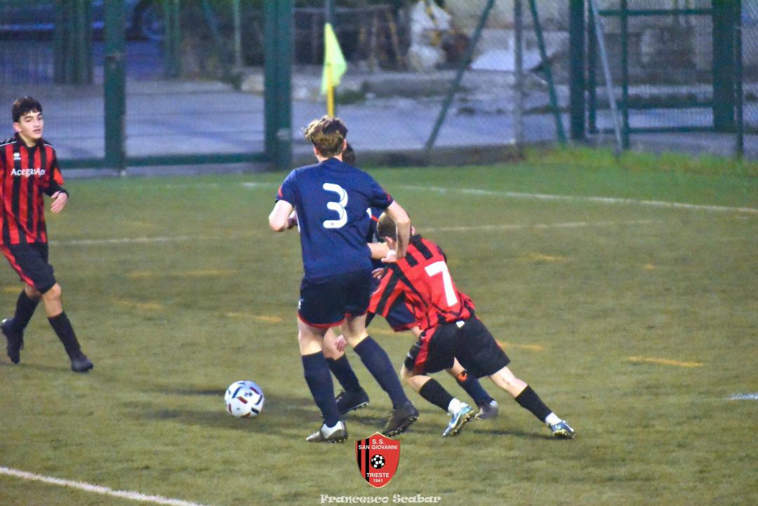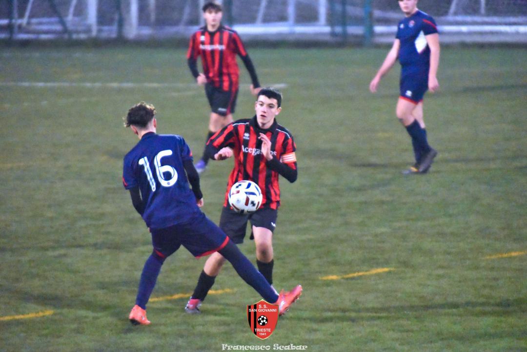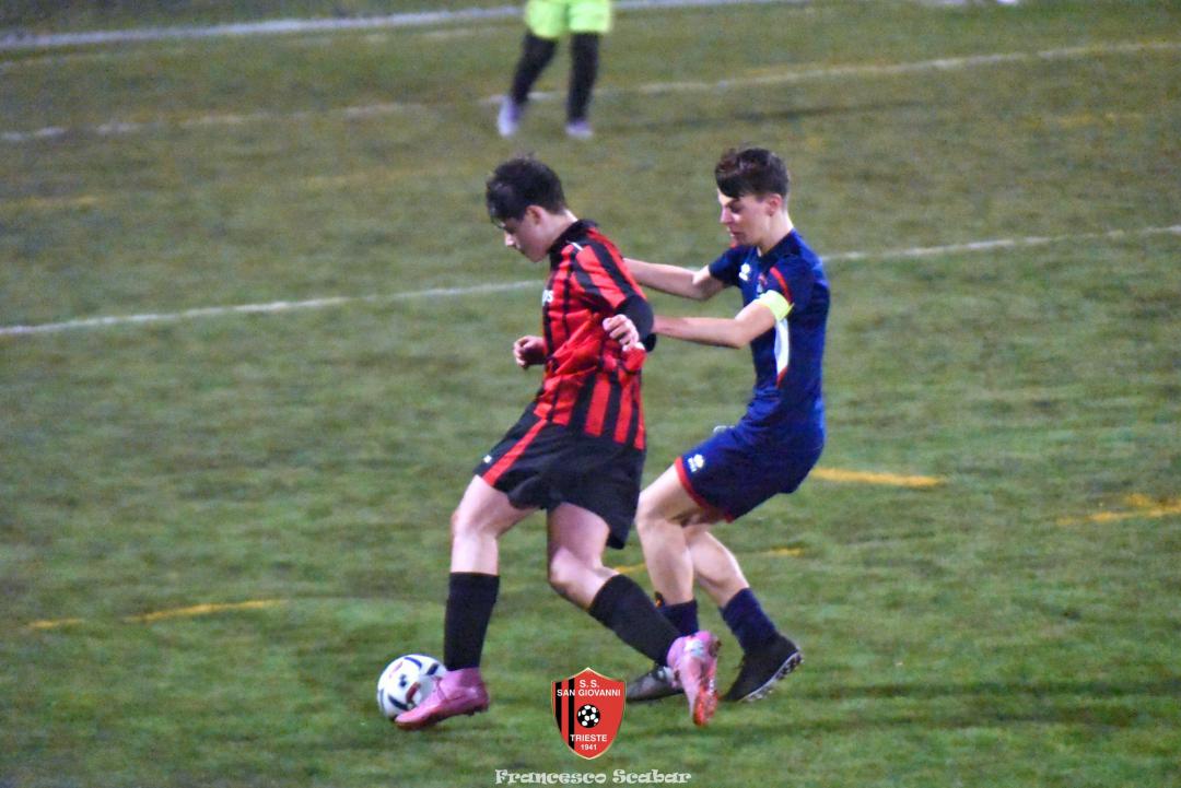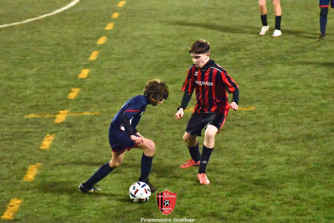 Nel recupero della sedicesima giornata, disputata martedì 24 febbraio sul Campo Rouna di Prosecco, il San Giovanni Under 15 di mister Antonio Giorgi archivia la pratica San Giusto Academy rifilando cinque gol alla formazione avversaria, penultima in graduatoria. Non è stata brillante la partita dei ragazzi in casacca rossonera che hanno giocato a tratti in modo assai abulico, ma ciò che conta era solamente vincere e portarsi momentaneamente due lunghezze sopra lo Zarja (con una sfida in meno).