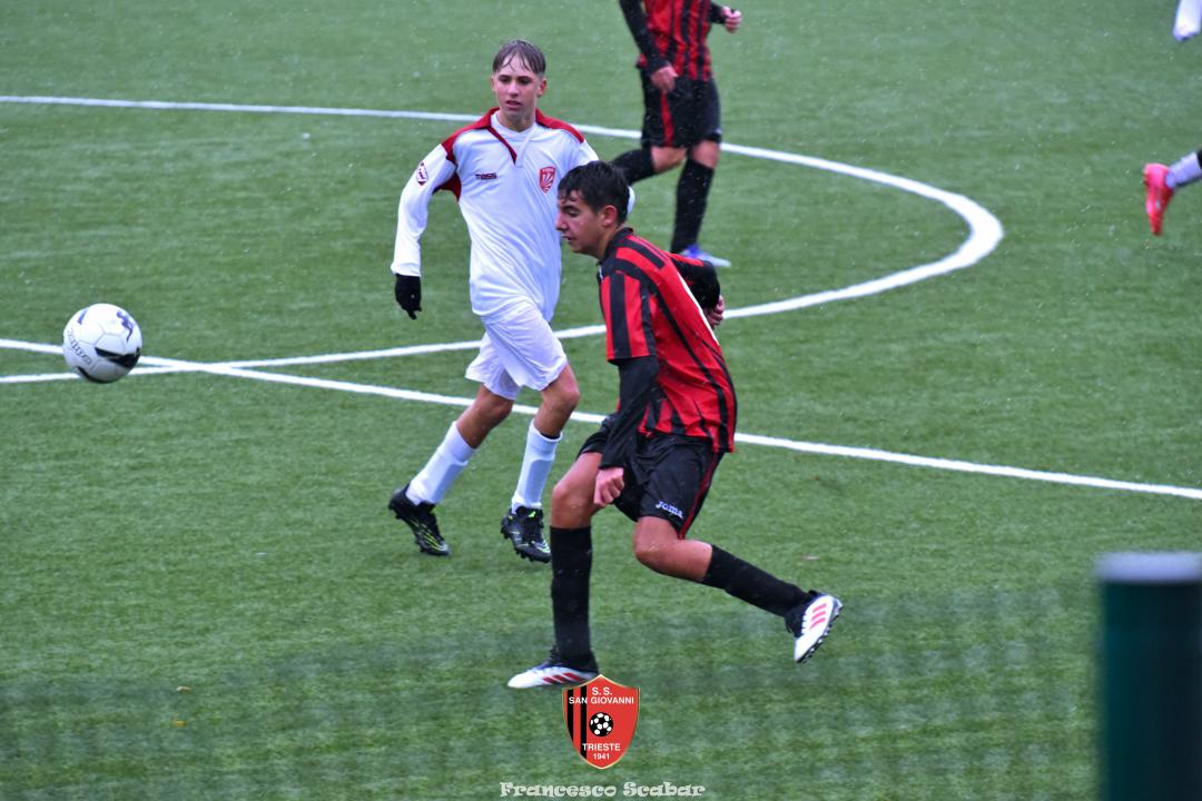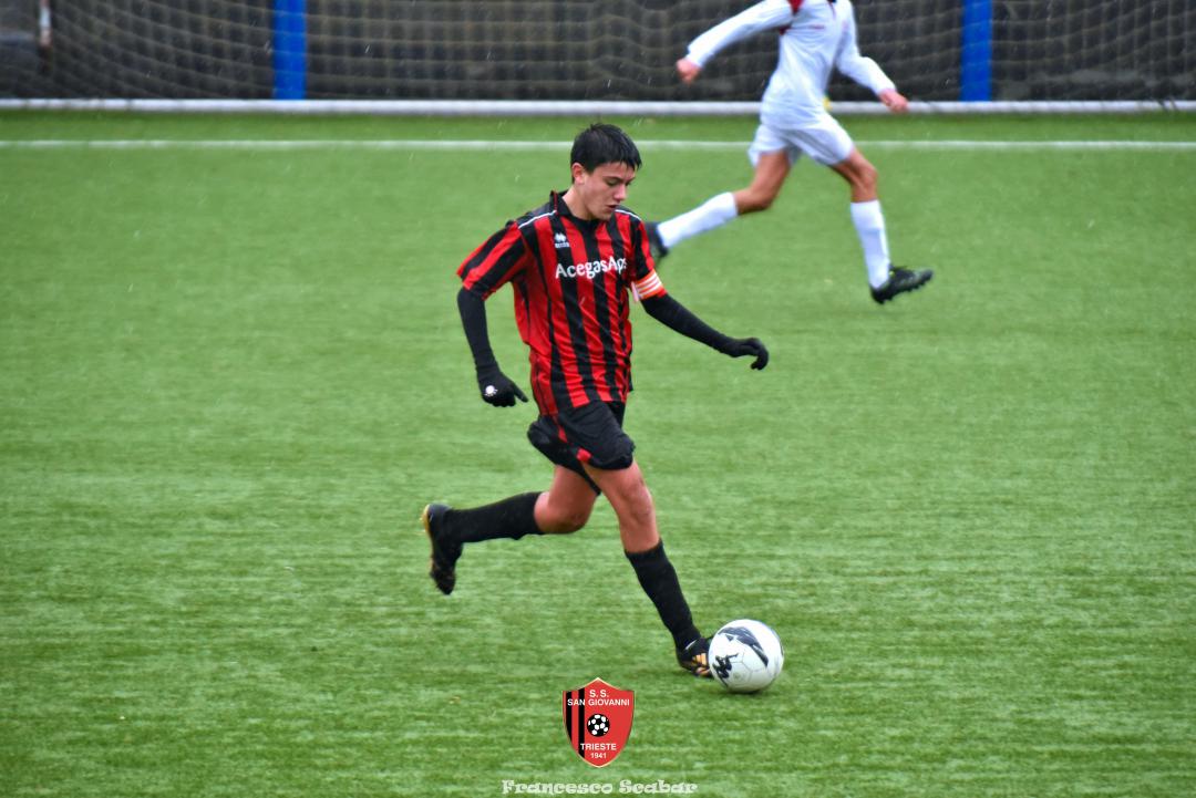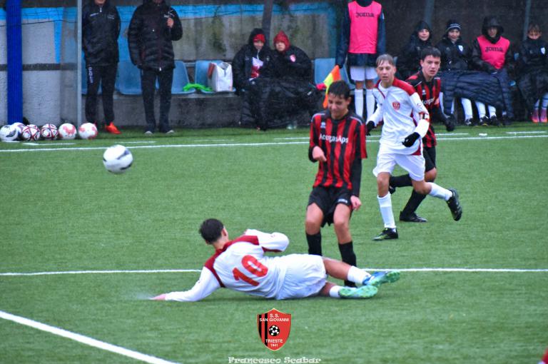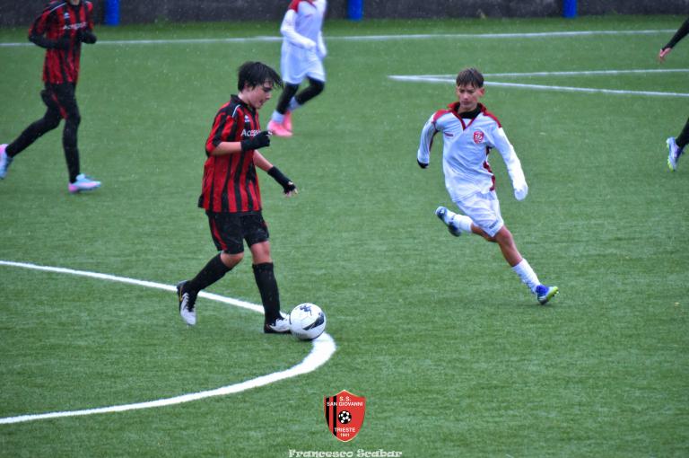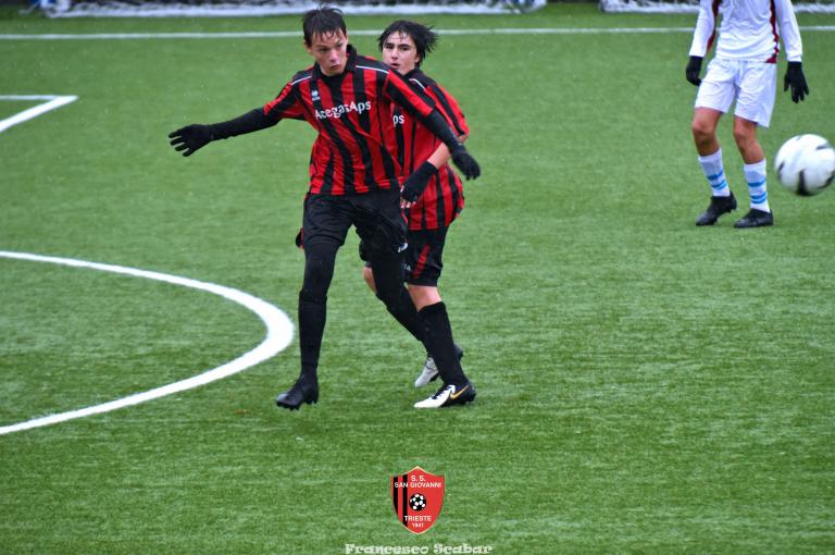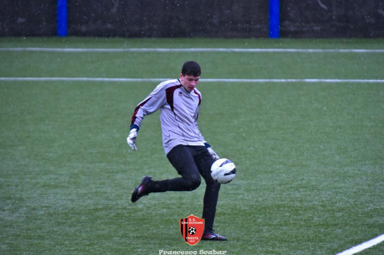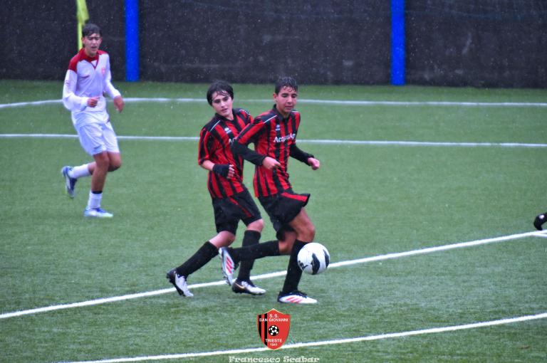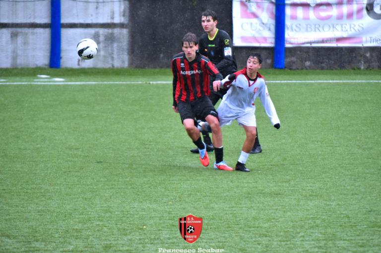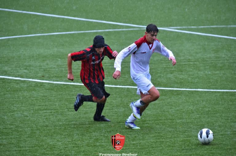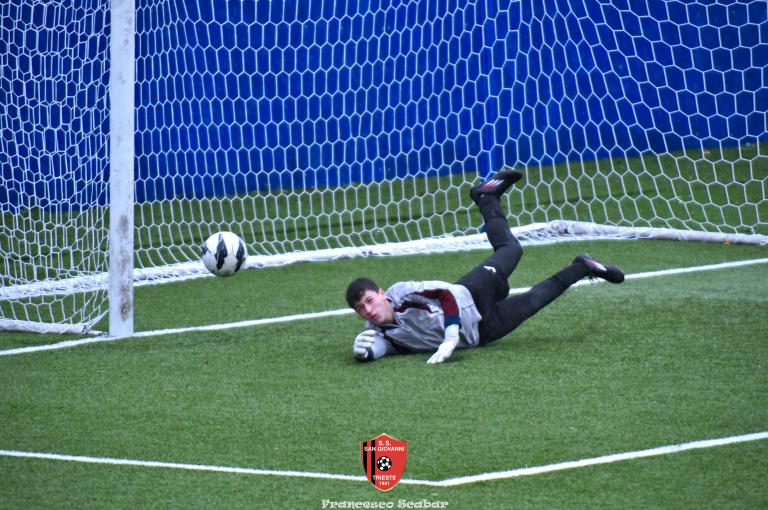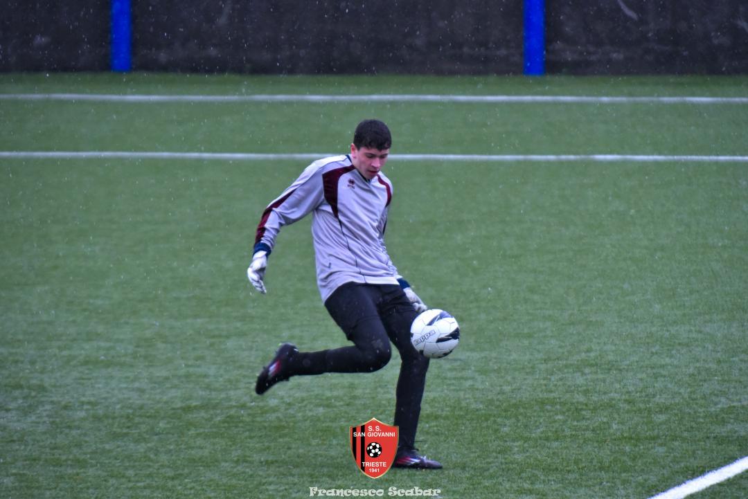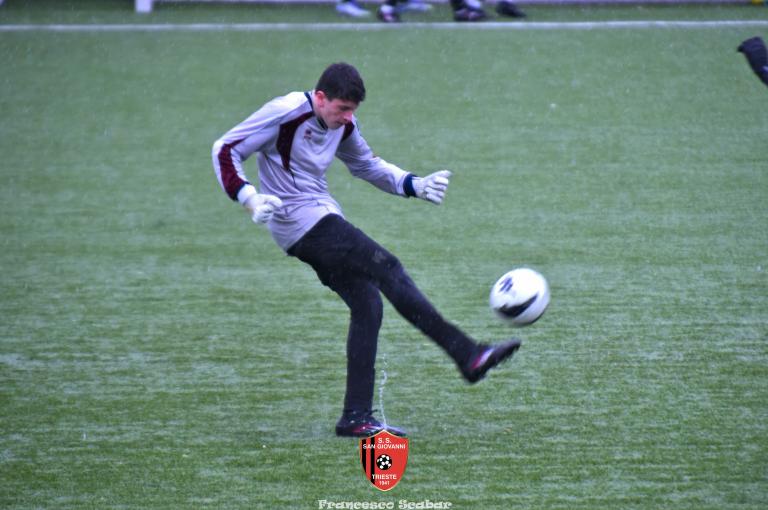 I primi minuti della partita vedono lo Zarja subito pericoloso con un insidioso tiro da fuori area che la traversa rimette in gioco sui piedi di un giocatore carsolino ma è abile il portiere rossonero Rodà a negare il gol del vantaggio agli avversari. Ma al nono minuto è il San Giovanni a far festa: sugli sviluppi di una punizione insidiosa calciata da Morelli, Righi riesce a sfruttare la respinta del portiere dello Zarja Coloni e regala la gioia del momentaneo vantaggio. La reazione dello Zarja arriva però presto ed i carsolini pareggiano con Koren sugli sviluppi di un calcio d'angolo che trova impreparata la difesa rossonera. Poi è più Zarja che Sangio con la squadra biancorossa che sfiora a più ripresa il gol del due a zero.
