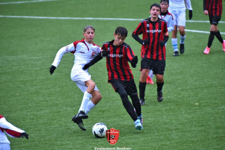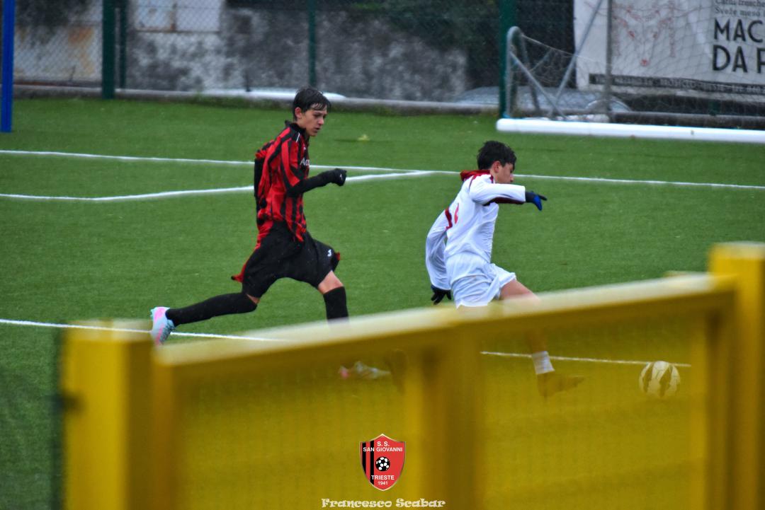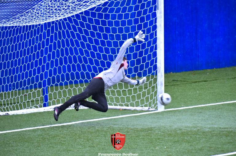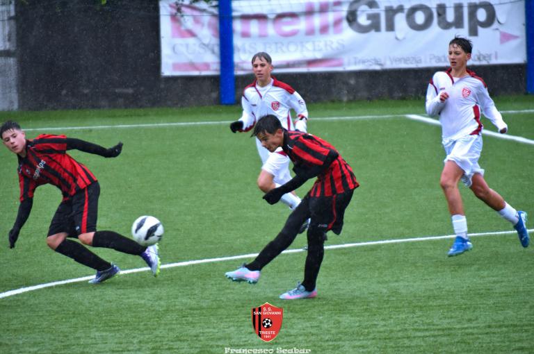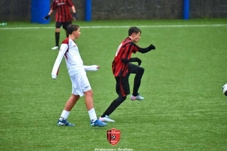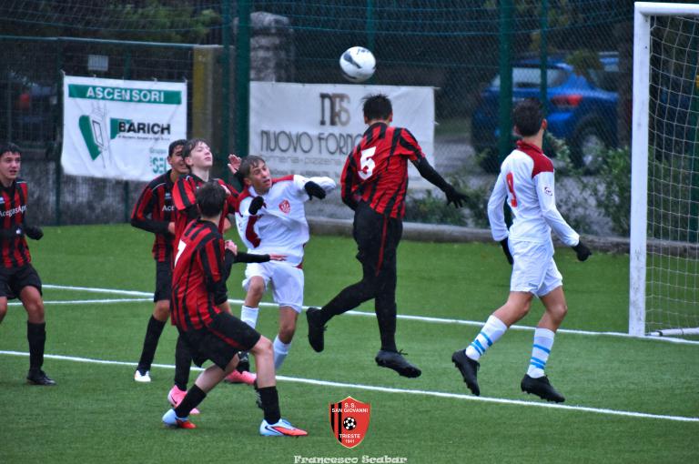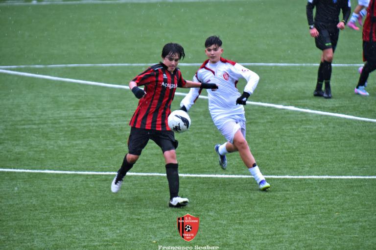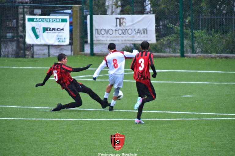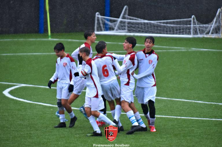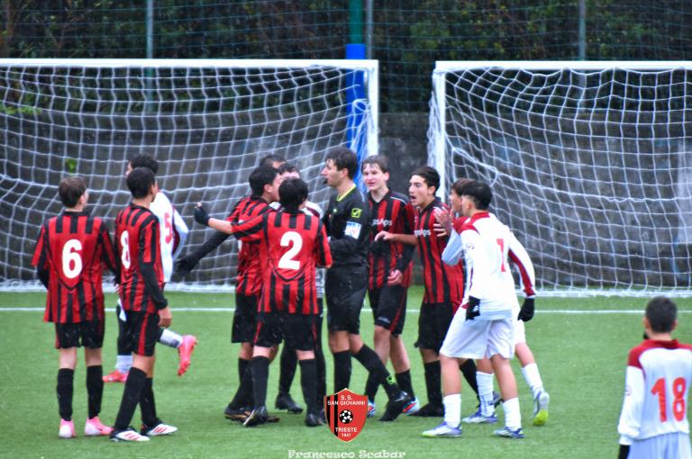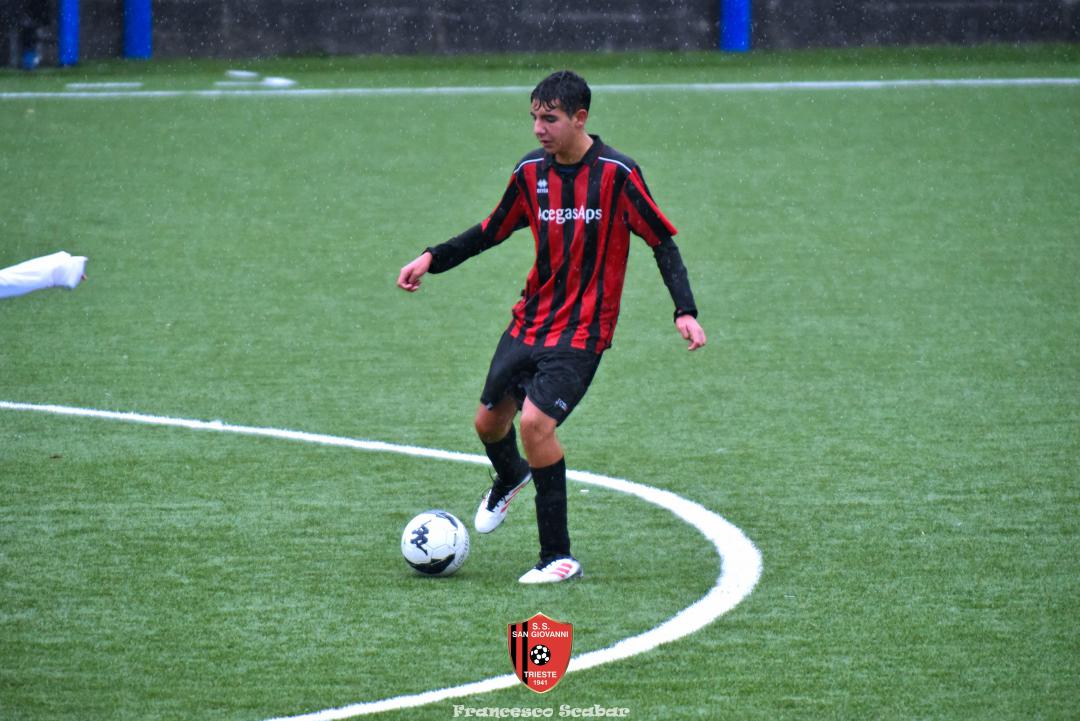 I primi minuti della partita vedono lo Zarja subito pericoloso con un insidioso tiro da fuori area che la traversa rimette in gioco sui piedi di un giocatore carsolino ma è abile il portiere rossonero Rodà a negare il gol del vantaggio agli avversari. Ma al nono minuto è il San Giovanni a far festa: sugli sviluppi di una punizione insidiosa calciata da Morelli, Righi riesce a sfruttare la respinta del portiere dello Zarja Coloni e regala la gioia del momentaneo vantaggio. La reazione dello Zarja arriva però presto ed i carsolini pareggiano con Koren sugli sviluppi di un calcio d'angolo che trova impreparata la difesa rossonera. Poi è più Zarja che Sangio con la squadra biancorossa che sfiora a più ripresa il gol del due a zero.